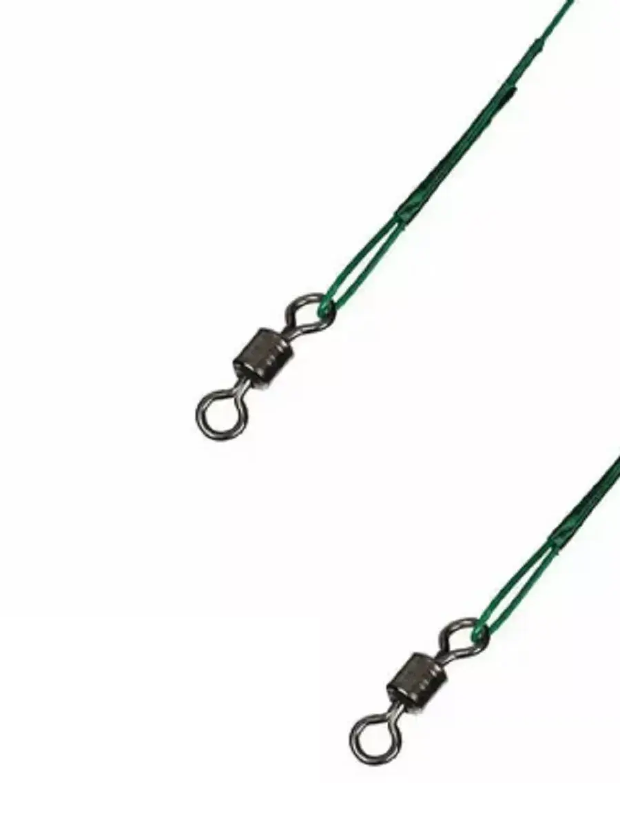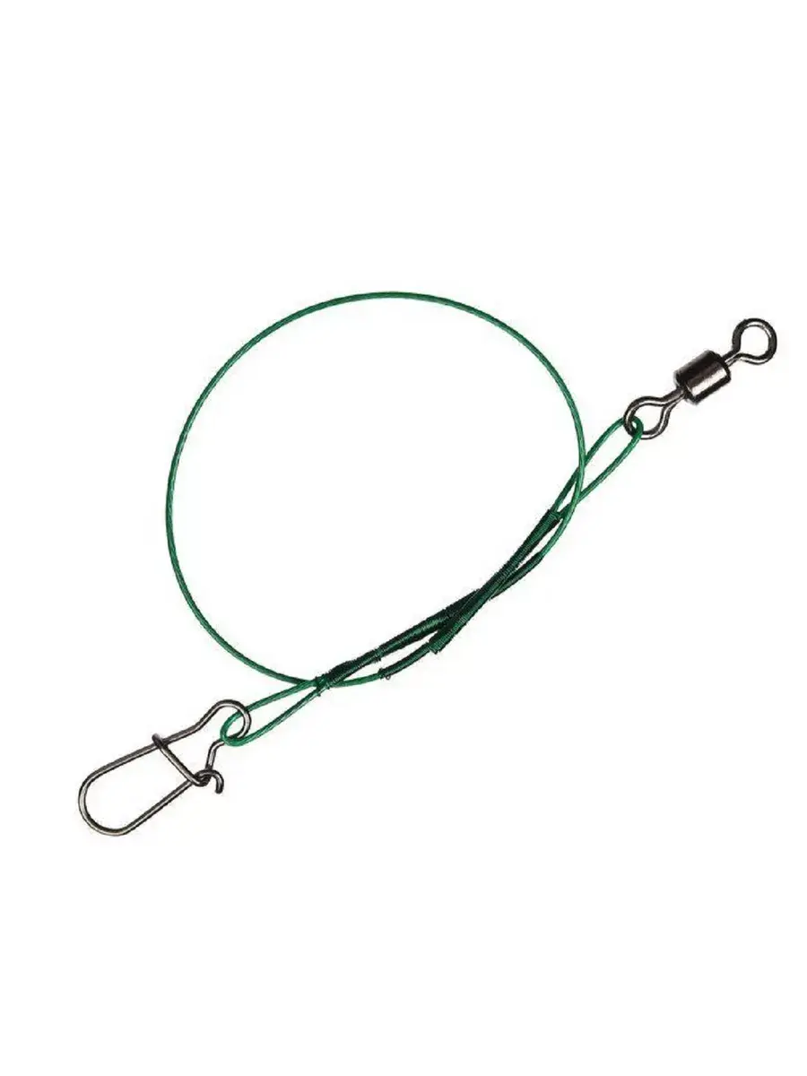 Поводок сплетен из 7 стальных нитей, в нейлоновой оболочке.