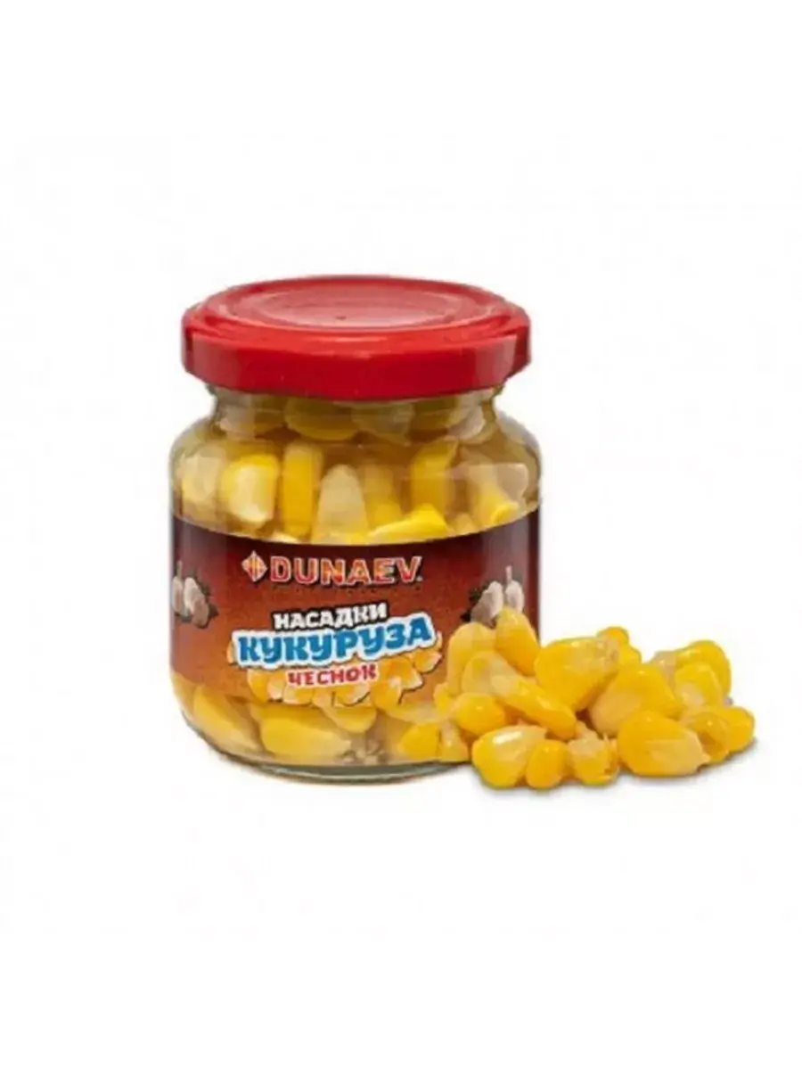 Натуральная насадка - желтая кукуруза с ароматом чеснока от компании Dunaev. Данный вариант насадки отлично подходит для ловли мирной рыбы. Все зерна кукурузы специально отобраны для насадки, они упругие и калиброванные по размеру, сочные. Готовая насадка помогает сократить время подготовки к рыбалке, а также ее можно добавлять в прикормки. Применима в любой сезон. Объем каждой банки - 100 мл.