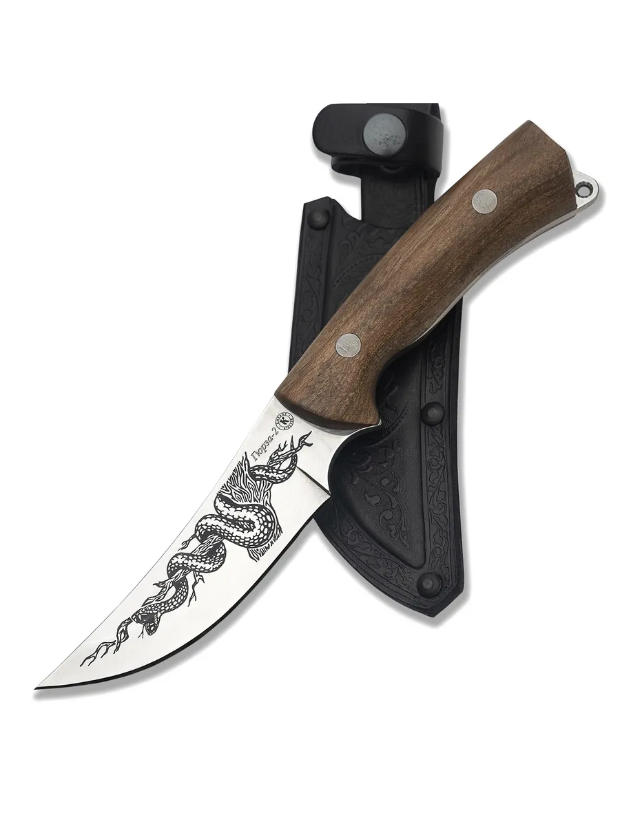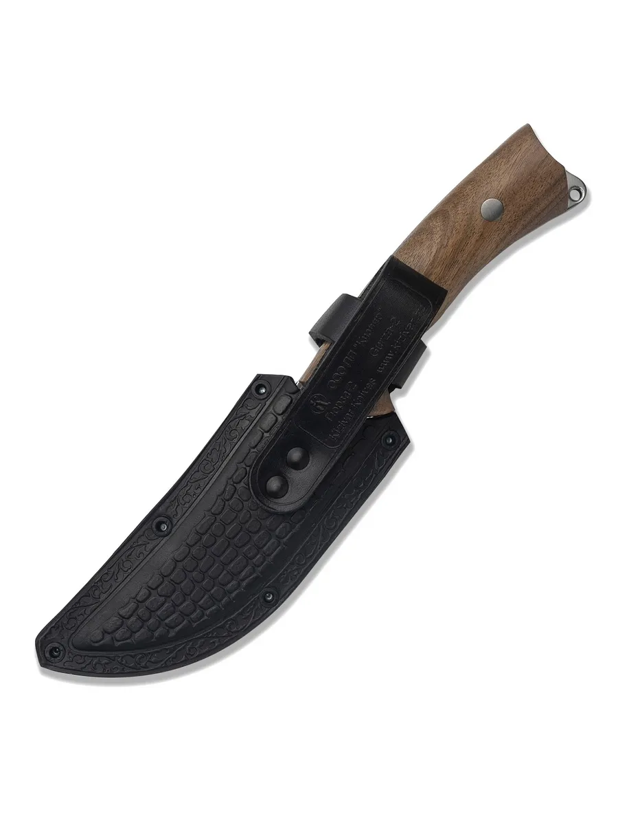 Оптимальная длина и форма клинка: С общей длиной 240 мм и длиной клинка 120 мм, Гюрза-2 обеспечивает идеальный баланс между маневренностью и мощью. Изогнутая форма клинка с возвышающимся верхним краем позволяет легко выполнять как точные резы, так и более серьезные задачи.