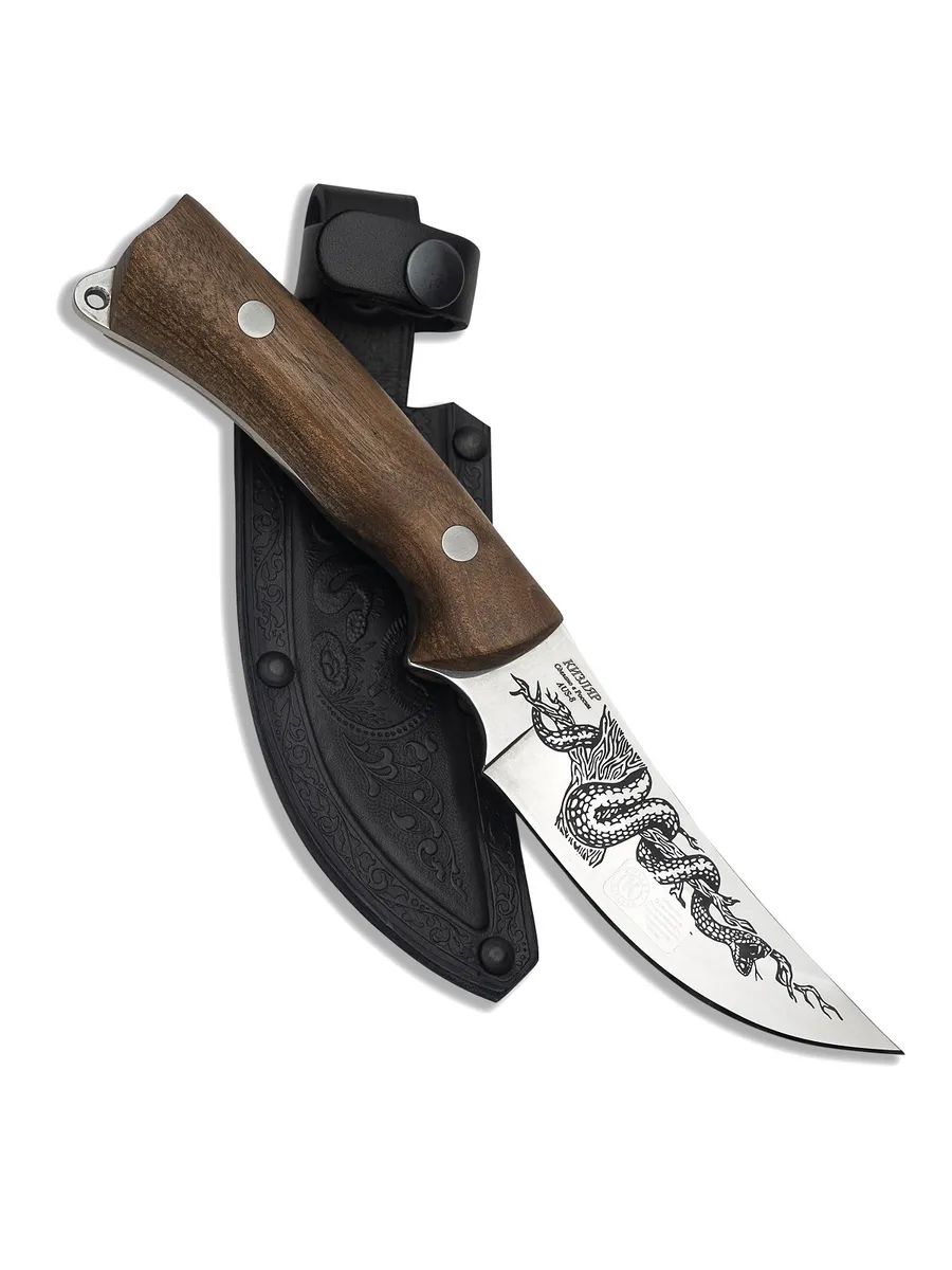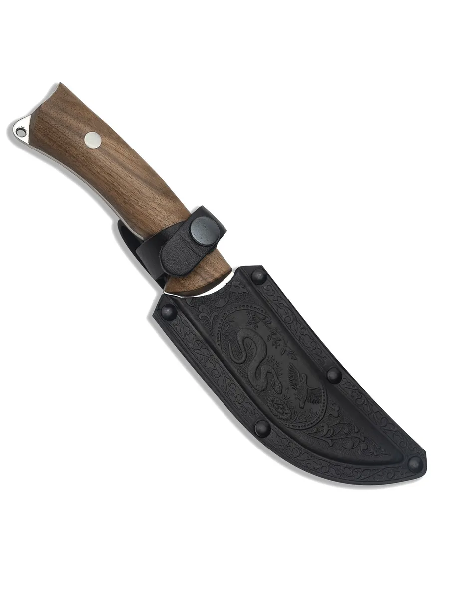Ножны из натуральной кожи: Поясные ножны из натуральной кожи — это не только защита для вашего ножа, но и стильный аксессуар, который подчеркнет ваш статус и вкус. Они удобно фиксируются и всегда будут под рукой.