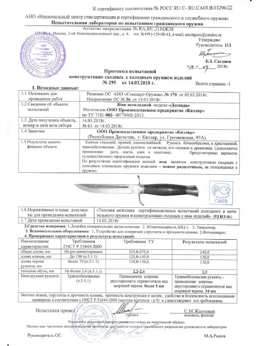 Длина клинка - 130 мм
