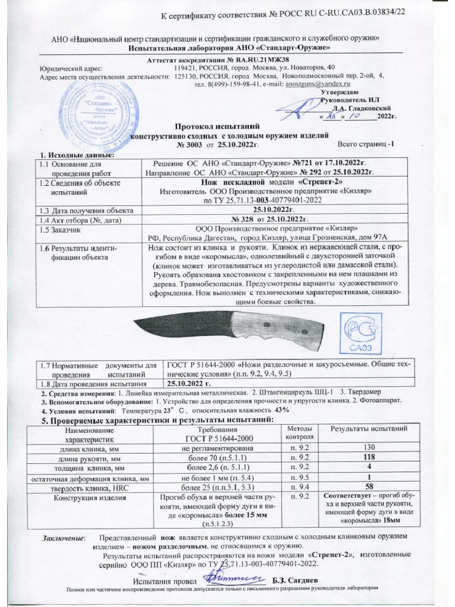 Нож Стрепет-2 Вогнутая заточка. Совокупность характеристик такой заточки идеально сбалансирована мастерами. Усиленная геометрия на поперечные нагрузки позволяет использовать нож в экстремальных условиях, а режущие свойства оставят Сталь АUS-8 твёрдость 57-59 HRC, японская нержавеющая сталь золотая середина среди всех ножевых сталей, хорошо держит заточку, сталь легко поддаётся заточке даже подручными средствами, хорошие показатели ударных нагрузок. При не высокой цене, это отличный выбор как профессионалов, так и любителей.