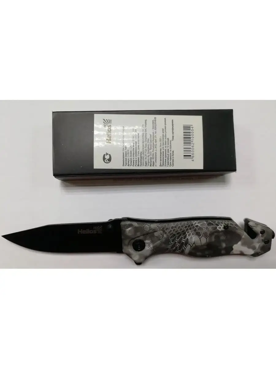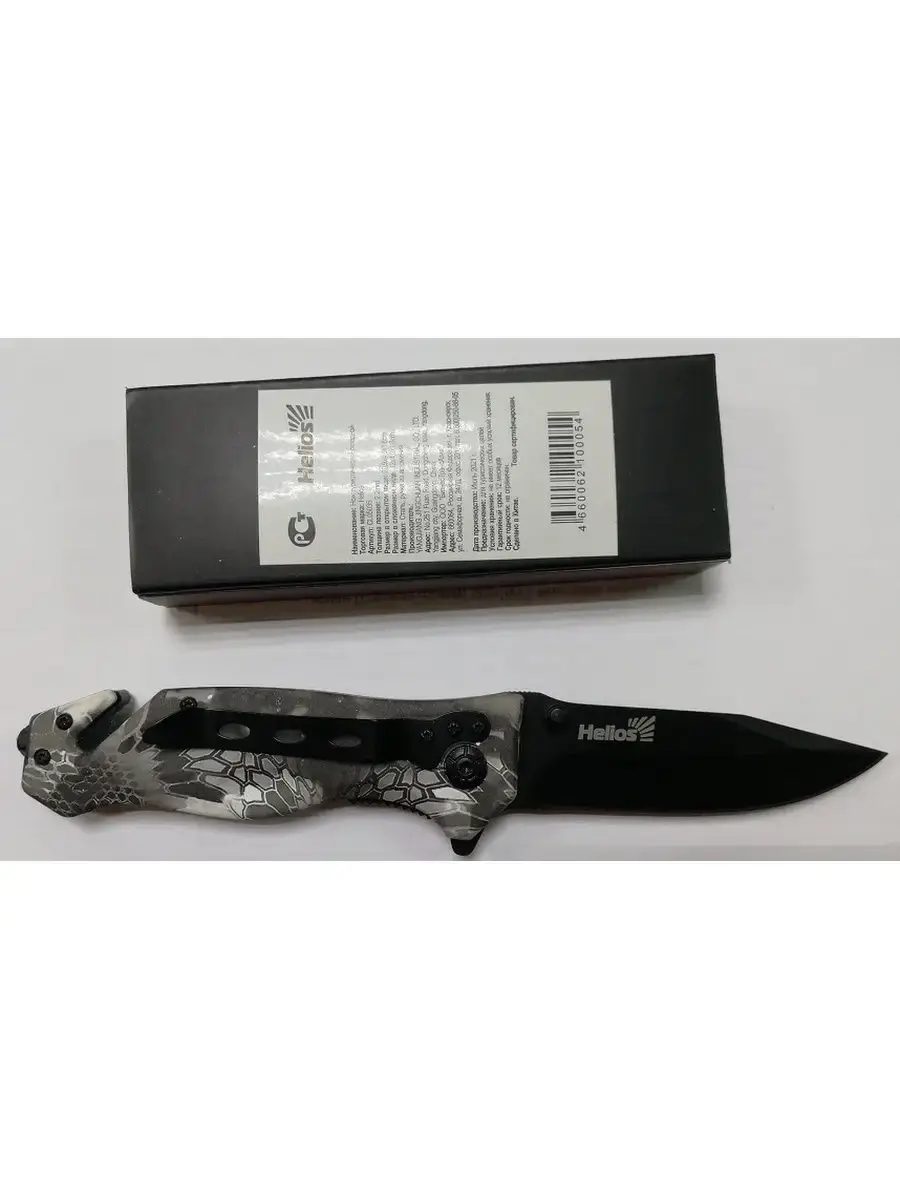 Серия складных ножей Helios, это удобные и прочные клинки. Ножи Helios предназначены для использования в повседневной жизни EDC (Every Day Carry), но при необходимости, ножи не подведут Вас и в непредсказуемых ситуациях. В серии использован различный дизайн окраса рукояти, от граффити до кмф, а также фактурные вставки из ударопрочного пластика. Клинок данной модели имеет плейновую заточку и оборудован шпеньком и флиппером для удобного однорукого открывания. Фиксируется клинок с помощью замка Liner Lock. В качестве материала рукояти используется комбинация из стальных накладок и ударопрочного пластика G10. Нож дополнительно оборудован стропорезом и стеклобоем. Ножи Helios - это надежные и прочные клинки, соответствующие ГОСТ Р 51501-99.Характеристики:Полная длина - 205 ммДлина клинка - 88 ммТолщина обуха - 2 ммДлина рукояти - 117 ммМатериал клинка - нержавеющая стальТвёрдость клинка - 52-54 HRCМарка стали - 3Cr13MoVТип замка - Liner Lock