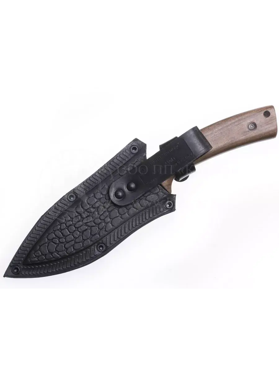 Широкий клинок позволяет удобно нарезать продукты большого диаметра. Вы можете брать этот нож в поход, на рыбалку и на охоту. Он комплектуется ножнами из натуральной ножи, что весьма удобно для транспортировки.