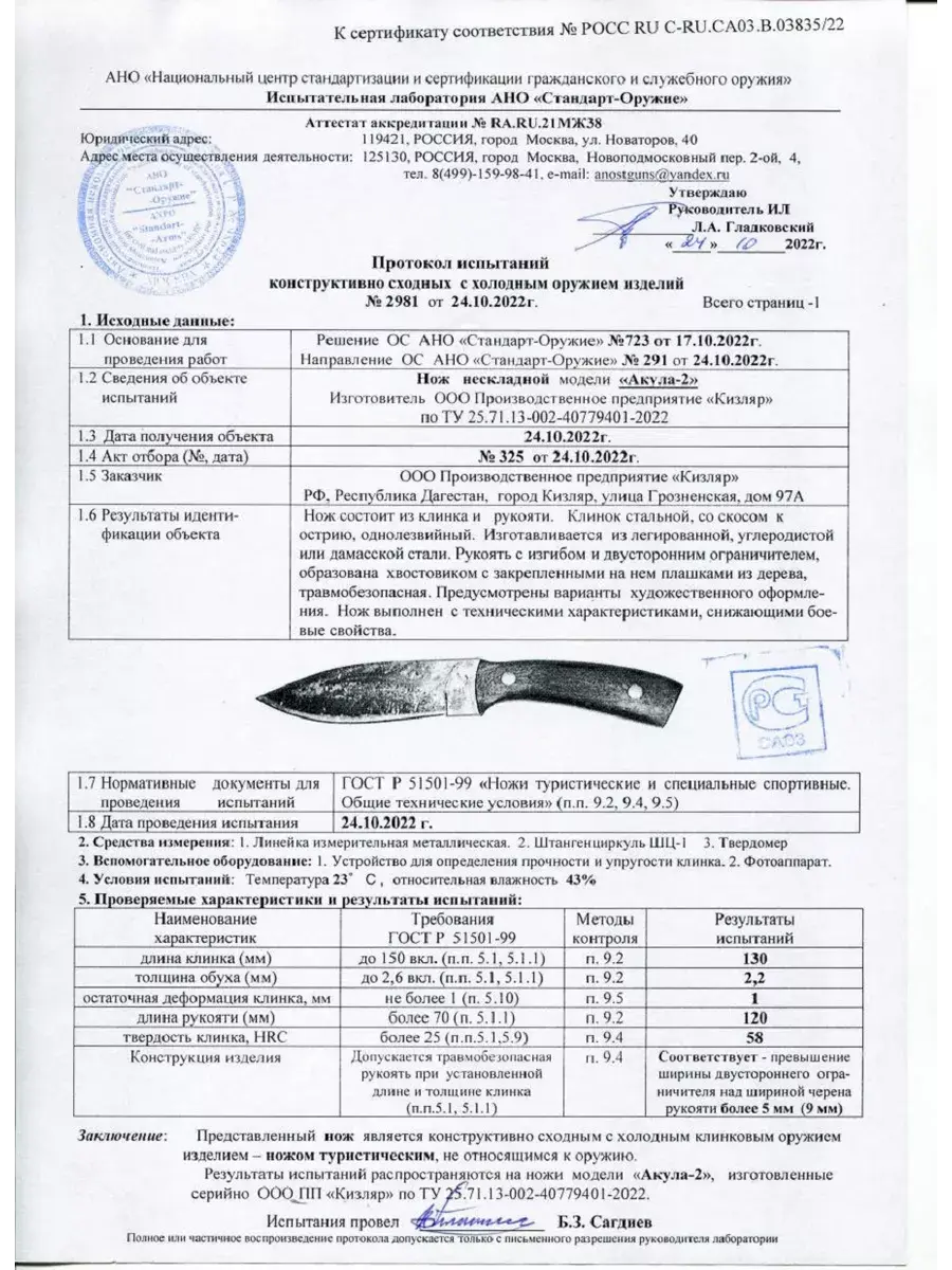 Пусть вас не смущает тот факт, что у ножа "Акула-2" не очень толстый обух. Это абсолютно не влияет на его функциональность. Нож отлично справляется с любыми задачами на кухне: прекрасно режет рыбу и мясо, сыр и овощи.