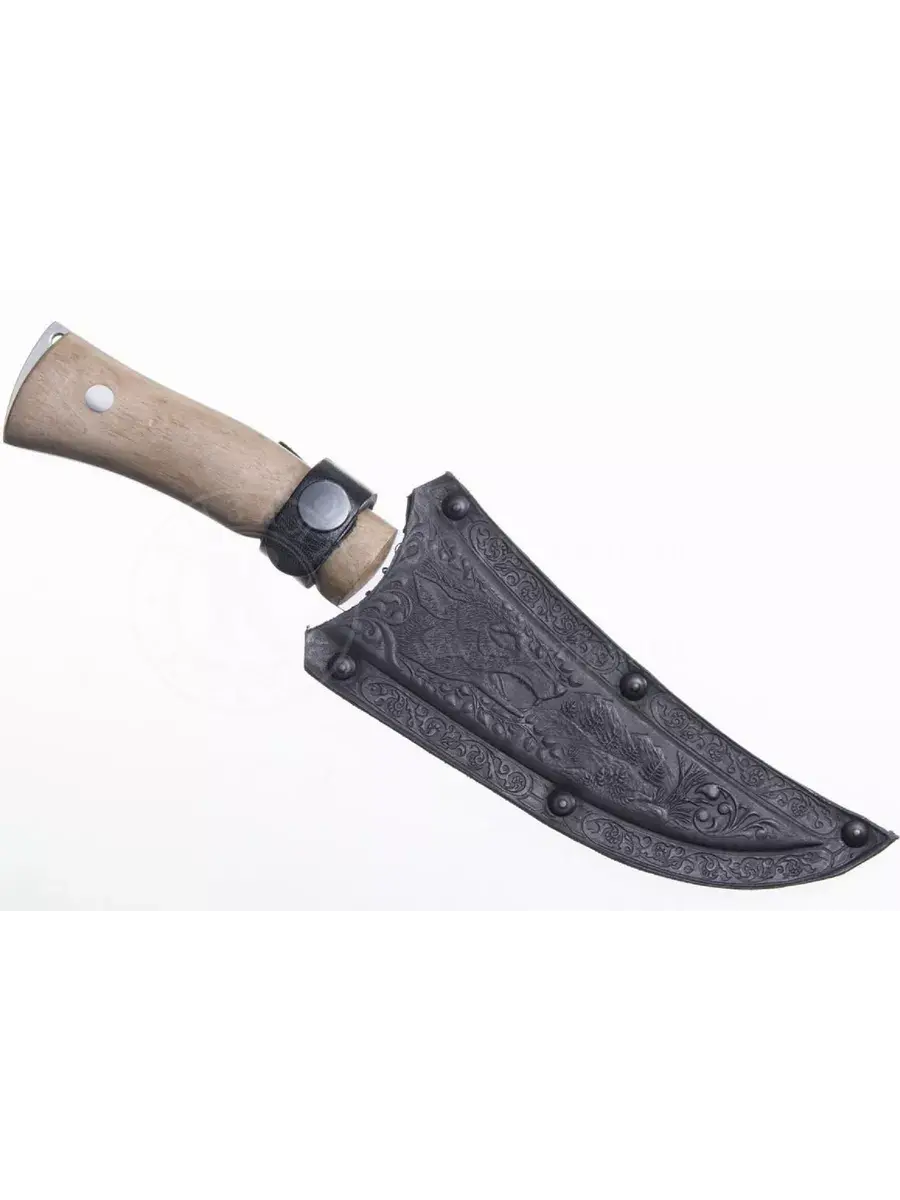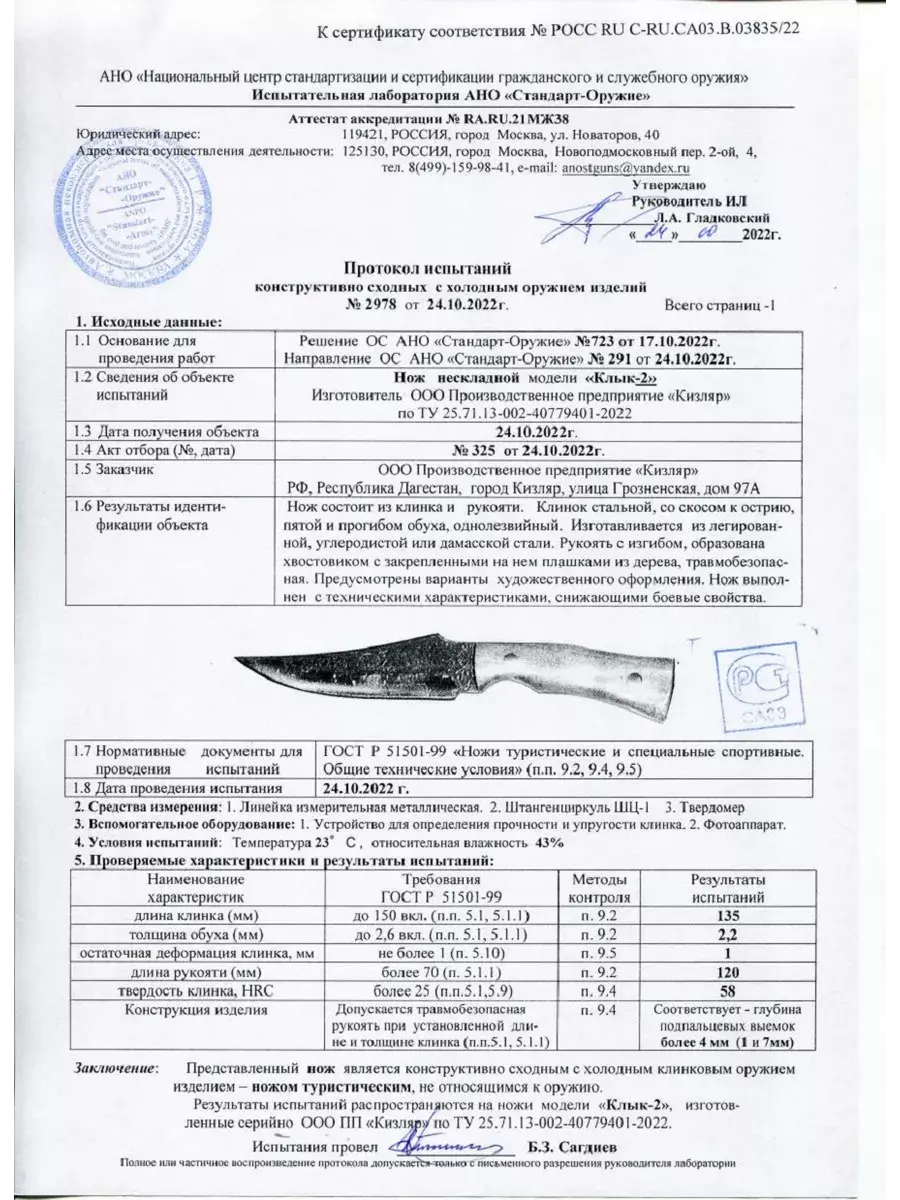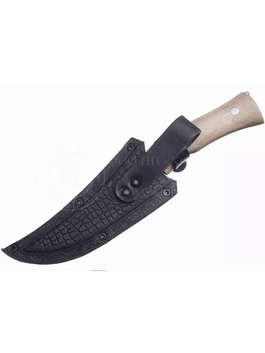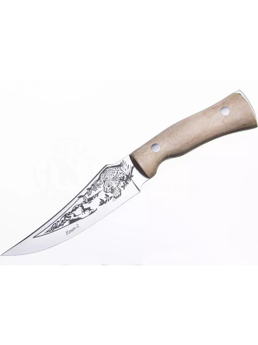 Стремительный дизайн с очень острым кончиком и хищный животный оскал придают ножу Клык-2 очень агрессивный и дерзкий вид. Очень удобная рукоять из натурального ореха с подпальцевыми выемками обеспечивает надежный приятный хват и снижает риск соскальзывания руки на клинок. На спинке клинка отведено место для упора под большой палец, позволяющее безопасно применять большую силу при работе с ножом.