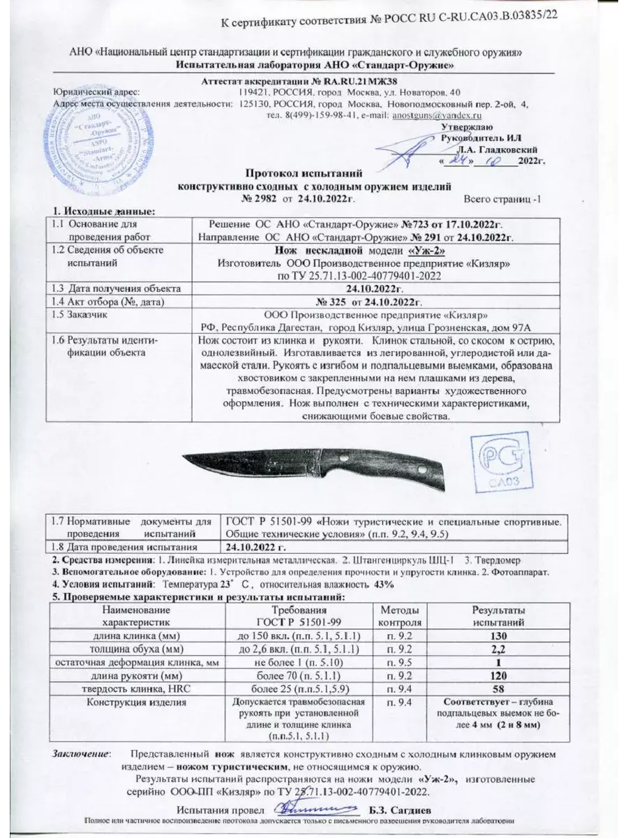 Толщина клинка 2,4 мм