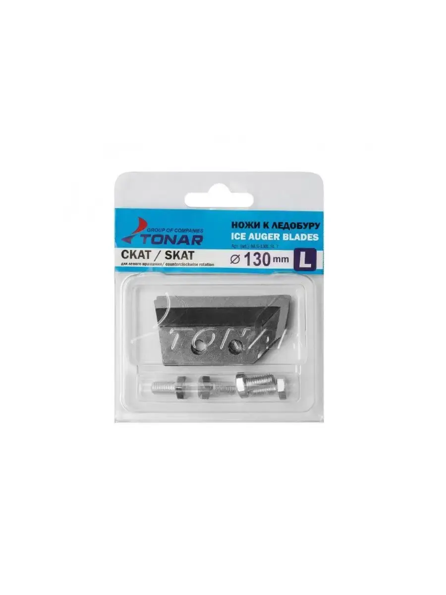 Комплект ножей к ледобуру ЛР-130 "СКАТ" c левым вращением. Ножи отлично работают по мокрому льду! Преимущества:Не откручиваются при бурении.Легко перетачиваются.Повышенная стойкость лезвия.Комплектуются болтами. Материал: сталь марки Ст65Г. После закалки ножи имеют твердость 57-62 HRC.