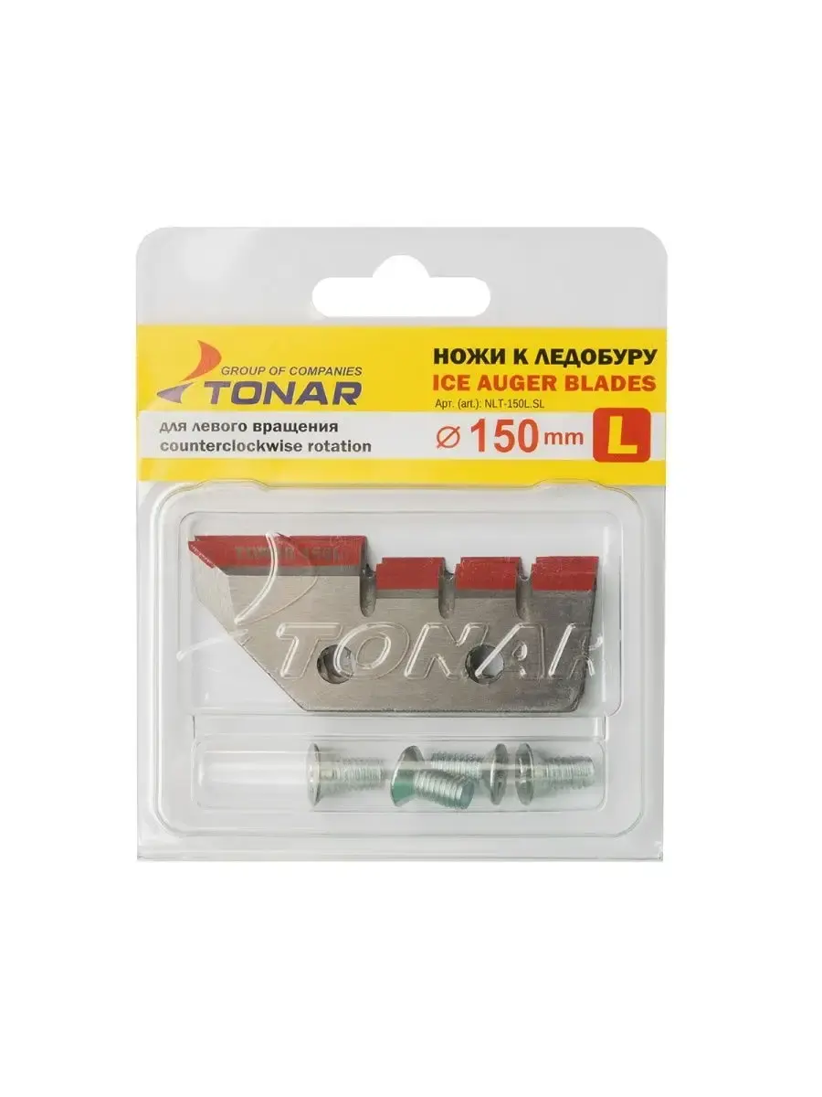 Ножи для ледобура 150 диаметра бренда "Тонар" созданы специально для бурения сухого льда в морозные дни. Обеспечивают плавное бурение льда даже при минимальных усилиях. Ножи подходят для ледобуров производства ГК "Тонар" ЛР-150L с левым вращением. На финальной стадии производства ножи подвергаются тщательной доводке, что обеспечивает лезвиям идеальную остроту и продолжительное сохранение заточки. Легированная высокоуглеродистая сталь марки СТ65Г имеет показатель твердости по шкале Роквелла 60 HRC. Для защиты от коррозии поверхность ножей для ледобуров "Тонар" обработана особым составом, созданным для оборонной промышленности. Распознать такие ножи легко - на их режущую кромку нанесена полоса красного цвета с логотипом "Тонар". Ее хорошо видно через прозрачную блистерную упаковку. В комплект также входит четыре крепежных винта. Ножи изготовлены с использованием нового высокотехнологичного шлифовального оборудования производства Италии.
