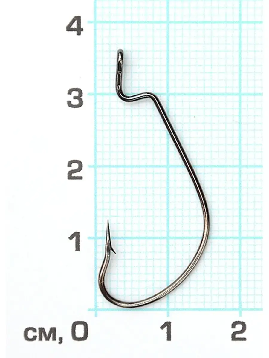 Офсетный крючок с широкой формой скошенного загиба, укороченным цевьем с «правильным» Z-образным изгибом ступеньки. Используются в каролинской и техасской оснастках при ловле на мягкие пластиковые приманки.