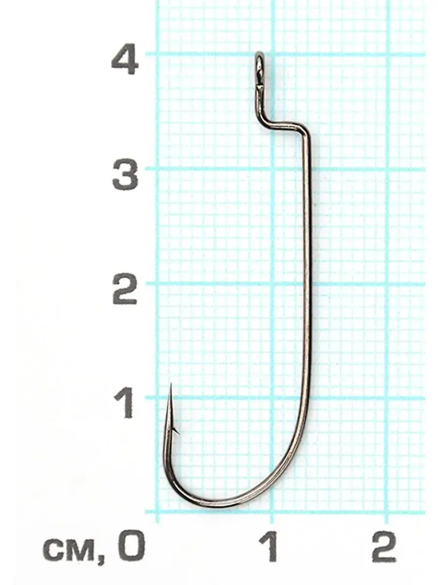 Классический офсетный крючок. Данная форма изгиба получила популярность из-за простоты оснащения ими всевозможных мягких пластиковых приманок.