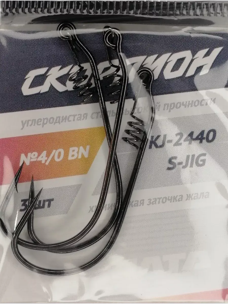 Отличный вариант для оснащения джиговой приманки. Наличие пружинки обеспечивает надежное удержание насадки на крючке и ее сохранность при насаживании.