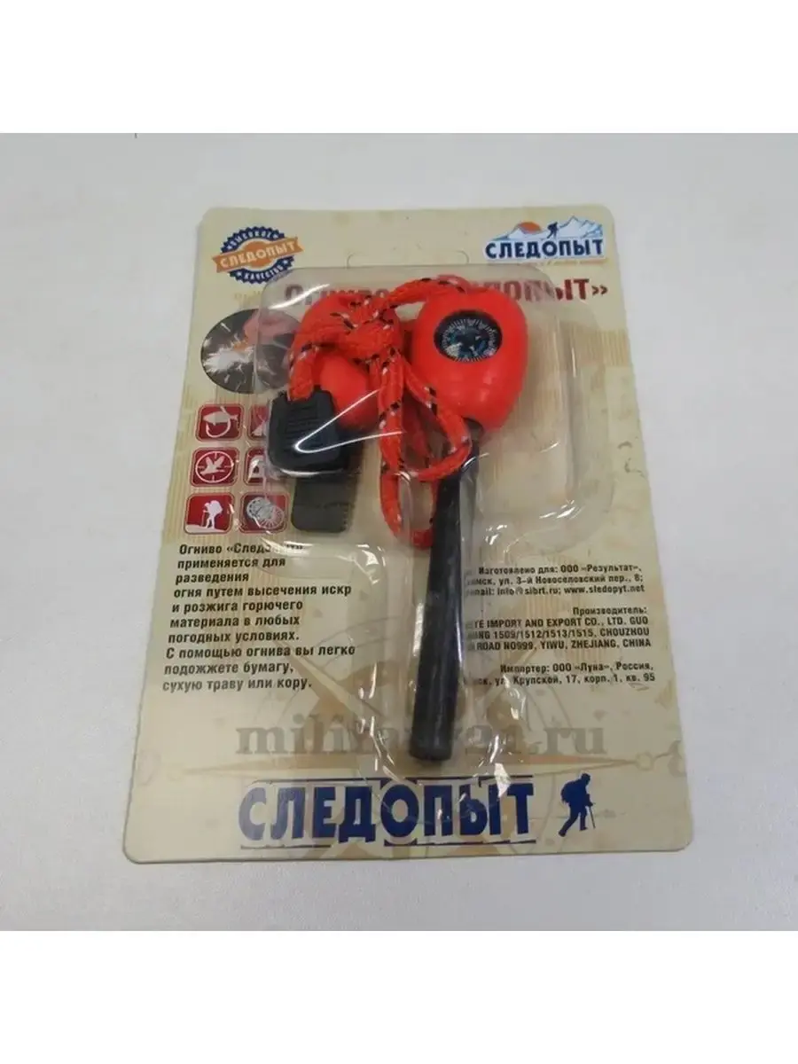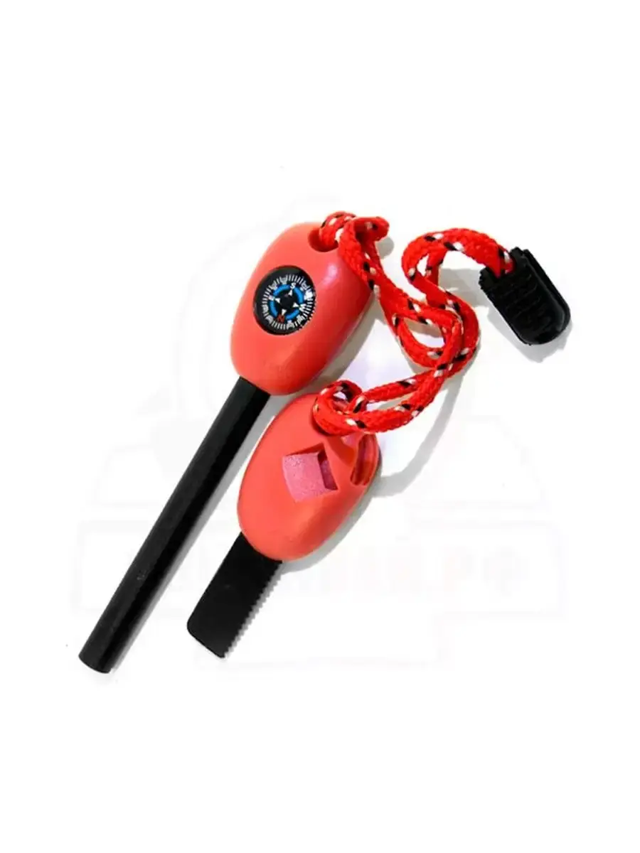 Большое огниво походное. Свисток, компас, кресало, регулируемый шнурок. Не имеет сроков годности, максимальная надежность. Огниво обязано быть в каждом НАЗе! Удлинённый толстый стержень, простейшая конструкция.Преимущества — не боится влаги, не испаряется, не замерзает, ресурс — от несколько сотен до пару тысяч разжиганий. Температура горения искр — около 3000 градусов Цельсия.