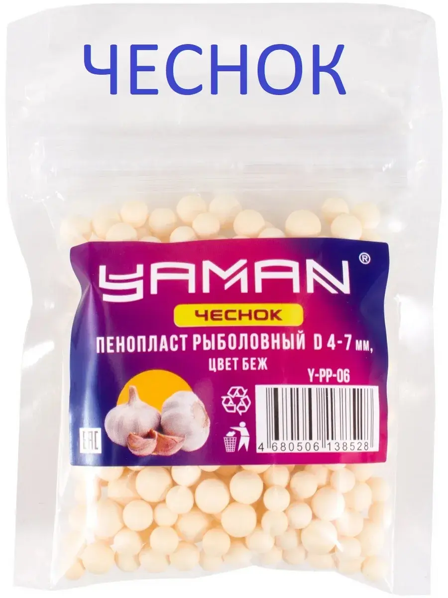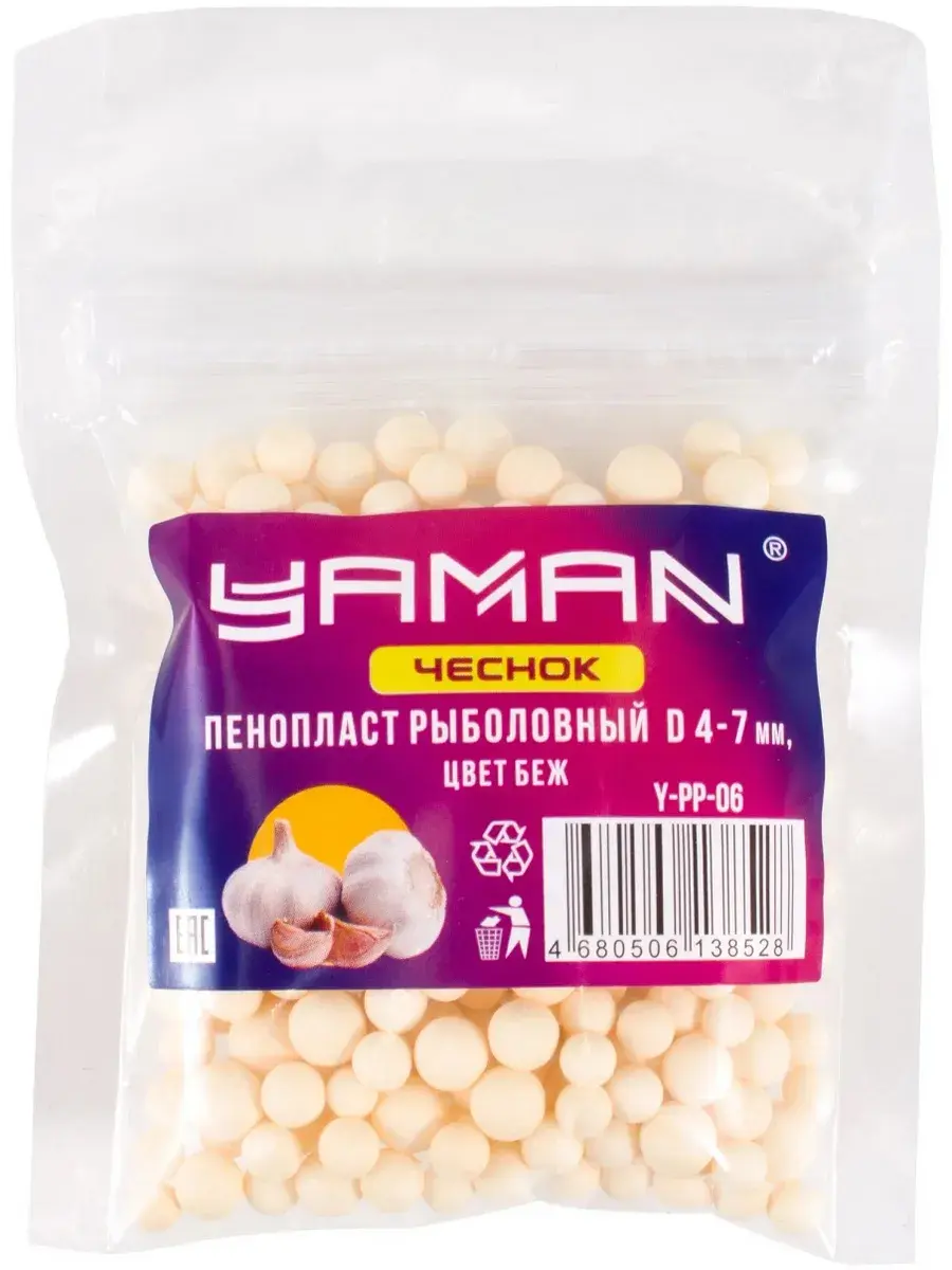 Пенопласт рыболовный Yaman Чеснок d 4−7 мм цв бежевый — пенопластовые шарики с различными вкусами — популярная наживка среди современных рыбаков. Пенопластовые шарики приманивают рыбу, имитируя различные вкусы и запахи, которые свойственны природной наживке. К тому же, так как шарики сделаны из пенополистирола, лёгкого и плавучего материала, они способны поднять крючок со дна водоема, если необходимо, чтобы крючок с наживкой не опускался на дно водоема. Сами шарики имеют разнообразные размеры, запахи и отлично приманивает рыбу, а в комбинации с различными приманками даёт еще лучший эффект. Пенопластовые шарики прекрасная альтернатива для приманки рыбы вместо червя или зерна кукурузы.