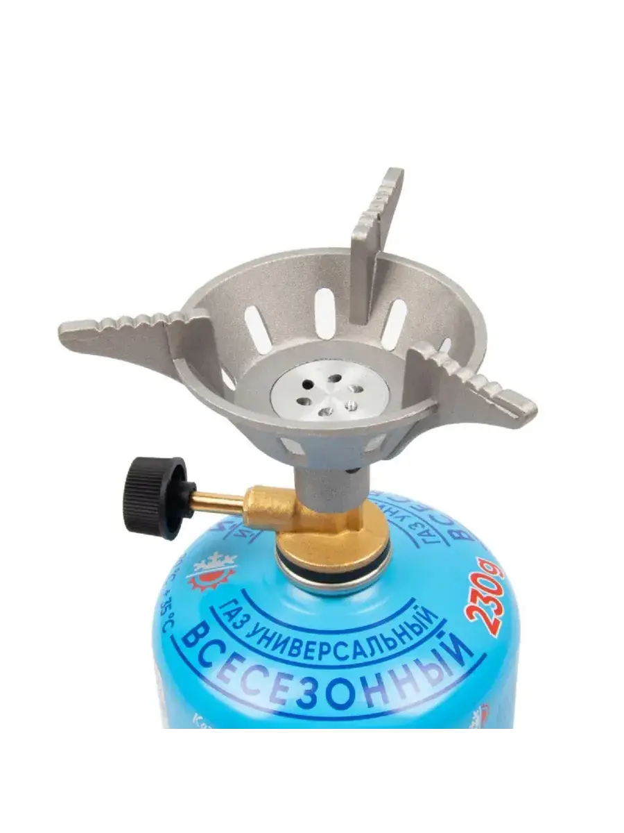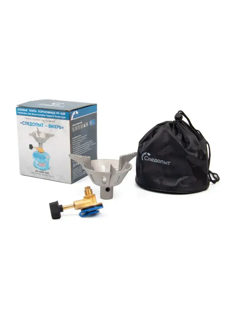 Следопыт Вихрь - одна из самых простых и компактных портативных газовых плит. Из конструктивных особенностей: прочный разборный корпус, скошенные отверстия под выход газа, способствующие его лучшему догоранию; высокая алюминиевая чаша с упорами под посуду для поддержания оптимальной высоты горения пламени.