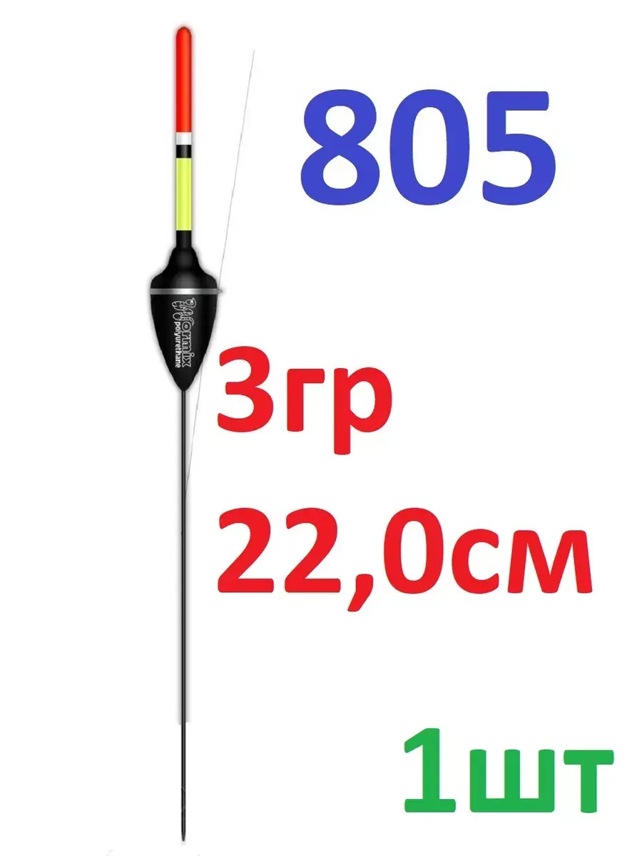 Серия поплавков 805 предназначена для ловли на слабом и среднем течении. Тело выполнено в форме, близкой к "перевернутой капле", но с измененной верхней частью - это сделано для улучшения чувствительности. При малейшем касании приманки рыбой от поплавка начинают идти круги на воде.
