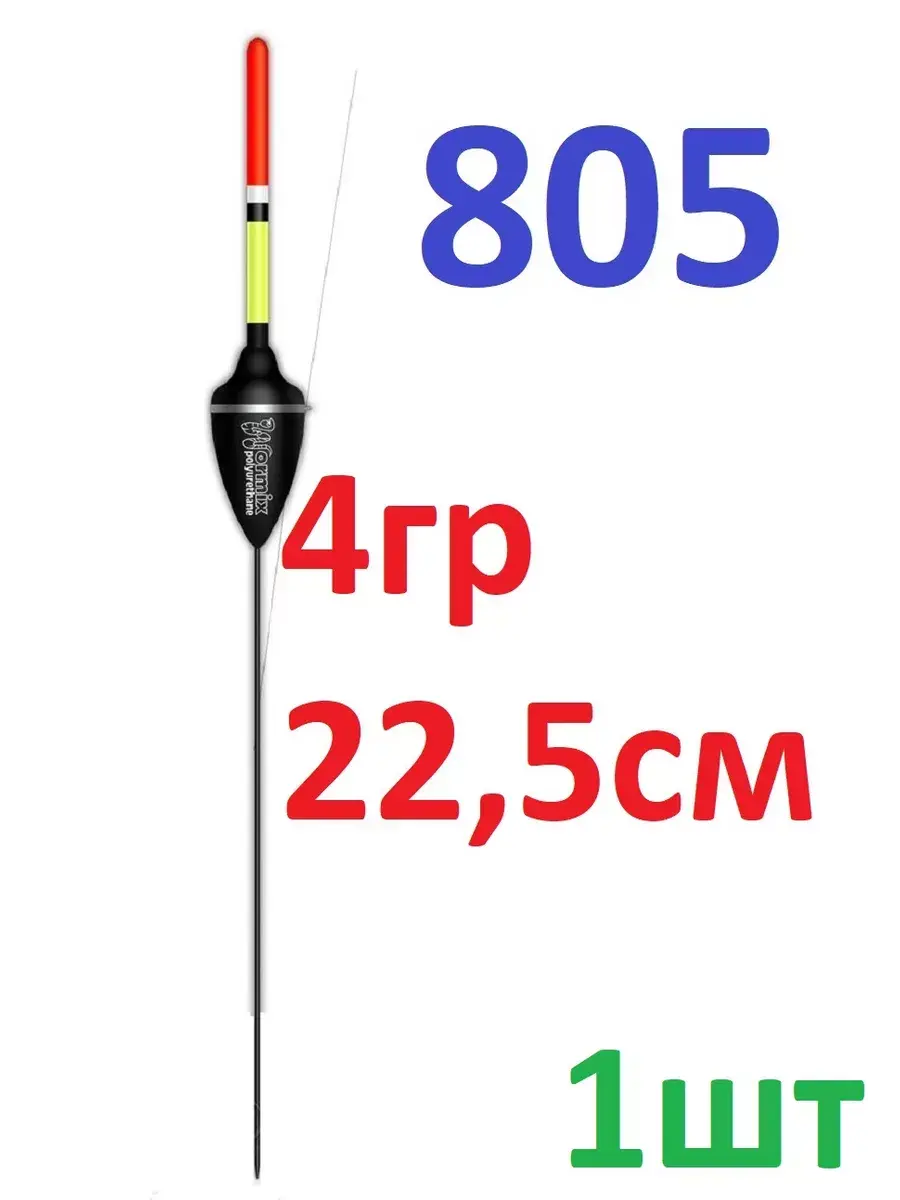 Серия поплавков 805 предназначена для ловли на слабом и среднем течении. Тело выполнено в форме, близкой к "перевернутой капле", но с измененной верхней частью - это сделано для улучшения чувствительности. При малейшем касании приманки рыбой от поплавка начинают идти круги на воде.