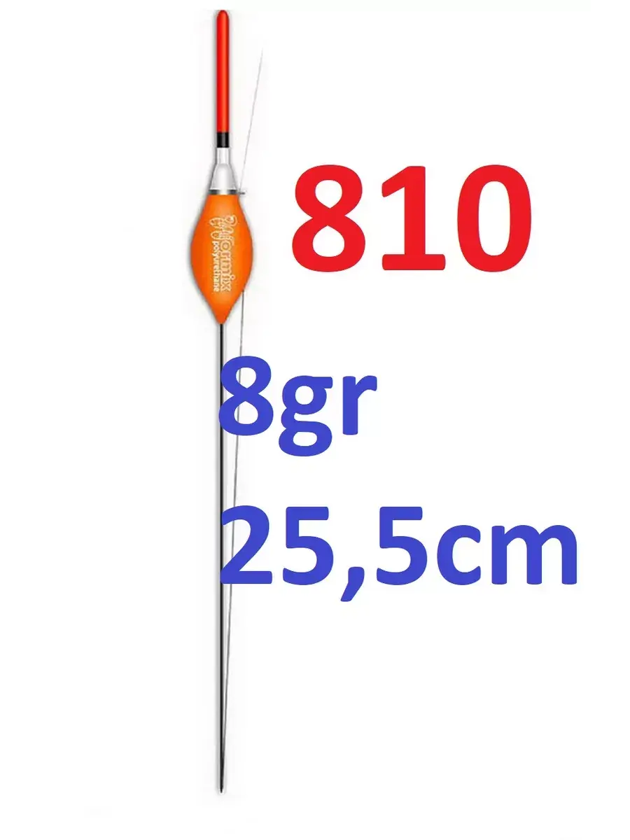 Тело поплавка похоже на веретено с чуть вытянутой верхней частью. Это необходимо для хорошей огрузки - центр тяжести немного смещен вниз. Такая форма имеет отличные аэродинамические свойства и позволяет сделать точный дальний заброс, а значит, серия 810 подходит для болонской ловли.
