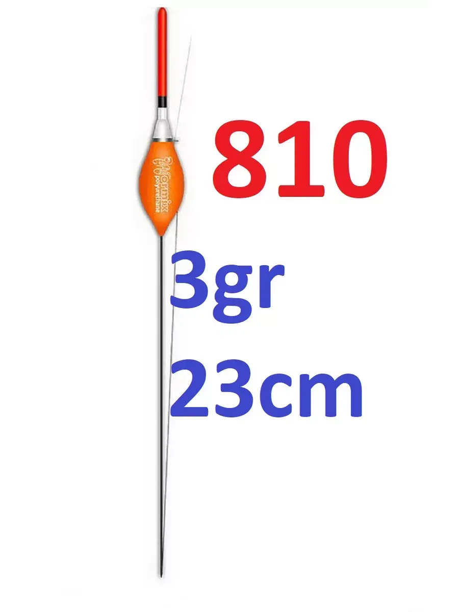 Тело поплавка похоже на веретено с чуть вытянутой верхней частью. Это необходимо для хорошей огрузки - центр тяжести немного смещен вниз. Такая форма имеет отличные аэродинамические свойства и позволяет сделать точный дальний заброс, а значит, серия 810 подходит для болонской ловли.