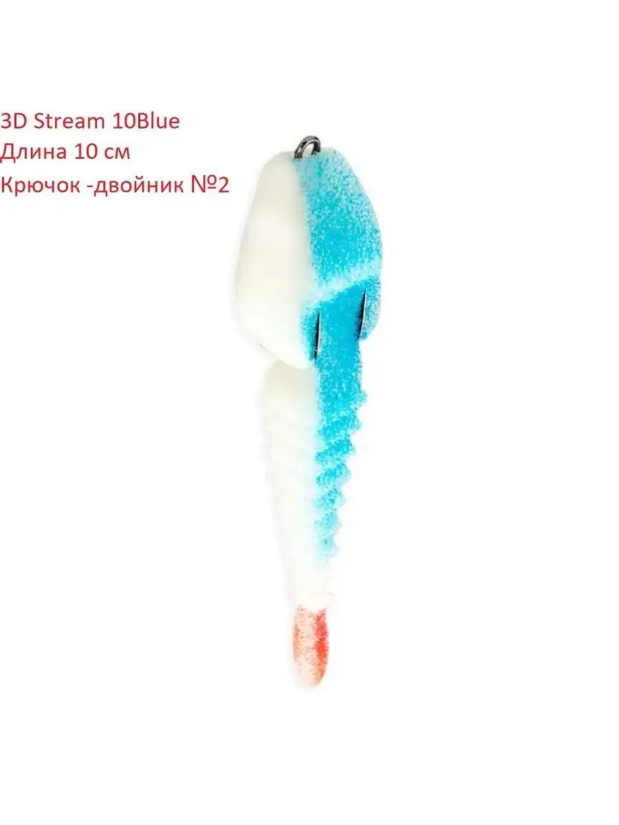 Поролоновая приманка длиной 10см, имитация молоди большинства видов рыб или некрупных взрослых рыб. Наиболее эффективна в начале-середине лета по средне-крупному хищнику в любых условиях. Тело приманки имеет веретенообразную форму, которая на 2/3 длины имеет «волнообразный гребенчатый» рельеф, многократно увеличивающий эффективную поверхность входа и выхода воды через поры приманки, перпендикулярную её движению. Приманка имеет оригинальную защиту от зацепов - особая форма головы, имеющая в носовой части выступ, который на 2-3 мм возвышается над жалами крючков и является отбойником зацепов. При такой конструкции высокая защита от зацепов обеспечивается без общепринятого подгиба жала крючка внутрь приманки, сохраняя хорошую реализацию подсечек при поклевках хищника. Приманка имеет отличные полетные характеристики, замечательно работает и в стоячей воде, и на сильном течении. Хорошо работает при классической джиговой «ступеньке». При ловле пассивного окуня и берша, активизации клева можно добиться с помощью коротких резких подбросов приманки от дна и ступенчатой анимацией в толще воды. При прохождении через крупные коряги лучше отказаться от резких рывков, кроме подсечки при четкой поклевке.