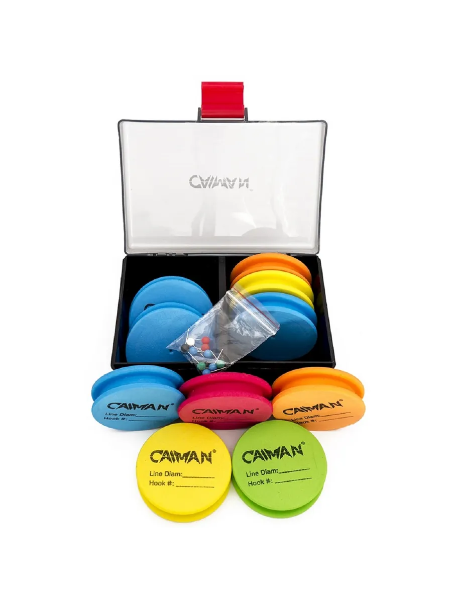 Поводочница "Caiman" представляет коробочку с десятью бобинами с углублением из материала EVA. Благодаря своей круглой форме, она предотвращает излом лески. Также на ней можно написать диаметр лески и номер крючка.
