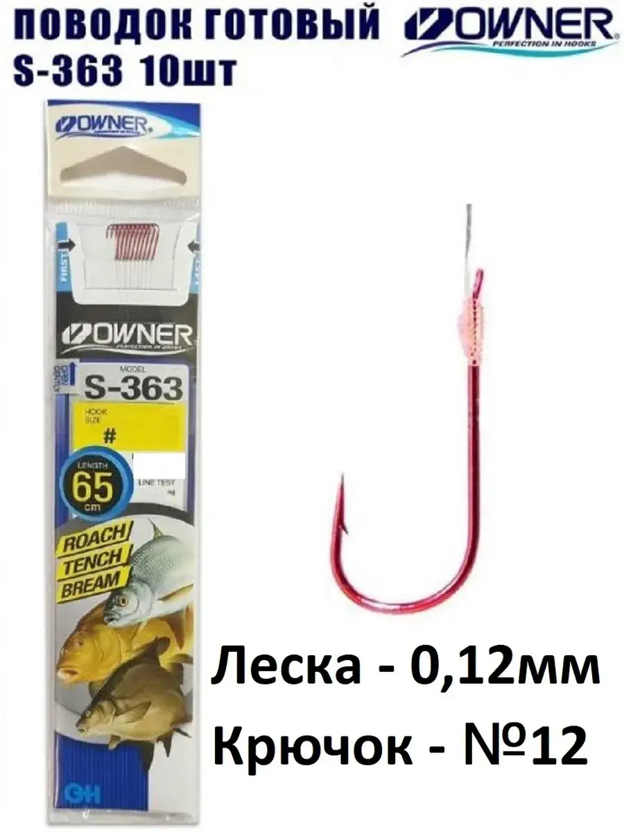 Серия поводков Owner/C'ultiva S-363 предназначена для ловли белой рыбы поплавочными и донными снастями. Длина поводка составляет 65 см, отсутствие петельки позволяет регулировать ее прямо на месте ловли. Размеры крючков Owner 50363 Chika внутри серии изменяются от 18 до 12 номера по международной классификации. Соответственно размеру крючка изменяется и диаметр поводка (от 0.09 до 0.12 мм). И если самые маленькие крючки на тонкой леске предназначены для ловли мелкой рыбы, то крупные крючки с прочной леской легко справятся и с трофейными экземплярами. Крючки этой серии имеют стойкое красное покрытие.