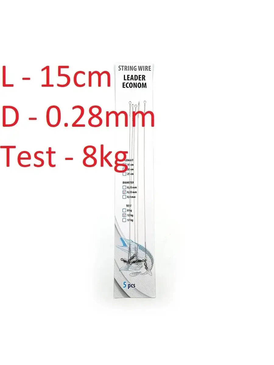 Поводок струна с вертлюгом Leader изготовлен из прочной нержавеющей проволоки и качественной фурнитуры. Скрутка со стороны лески имеет малый шаг для предотвращения попадания лески или плетенки между витков поводка. Скрутка ос стороны приманки имеет оптимальное соотношение длины и количества витков, что обеспечивает простоту монтажа приманки без потери прочности. Поводок является необходимым элементом оснастки при ловли зубастых хищников: щуки и судака. Использование поводка «Струна» обеспечивает максимально удобную и быструю замену приманок в процессе спиннинговой ловли. Для этого необходимо предварительно скрученный конец поводка просто раскрутить пальцами, насадить приманку, а затем снова скрутить поводок.
