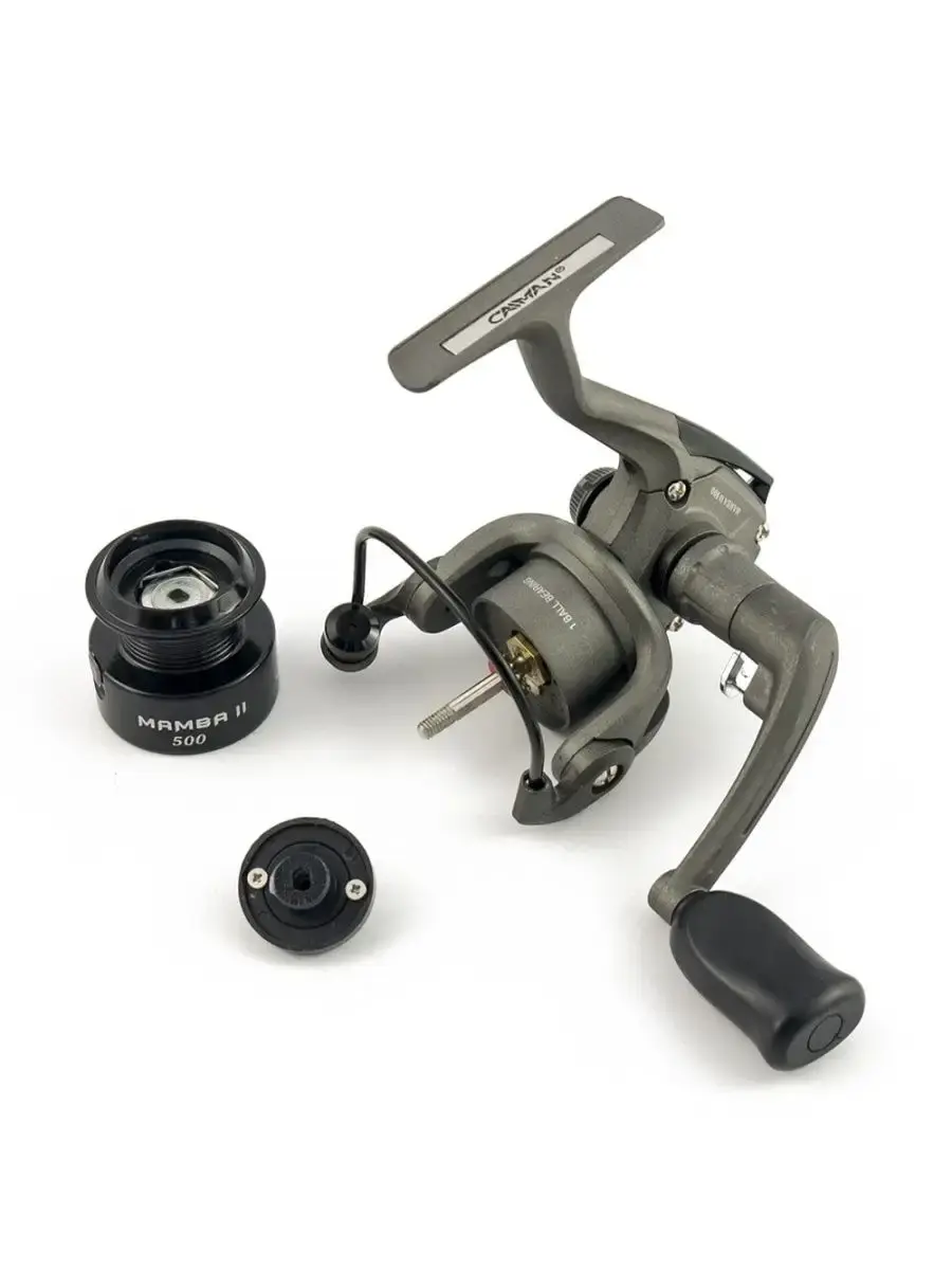 Катушка Caiman Mamba II - универсальная модель для решения многих задач: донная ловля, ловля на поплавок, спиннинговая или фидерная ловля. Передний фрикционный тормоз имеет длинный ход, что позволяет рыболову тонко настроить необходимое усилие для безопасного схода лески. Полая дужка лесоукладывателя отлично противостоит деформации, а сбалансированный ротор практически исключает вибрации катушки при намотке. За укладку лески на шпулю отвечает конусный ролик, установленный на подшипнике скольжения. Рукоять катушки Caiman Mamba может по желанию рыболова переставляться под левую или правую руку. Механизм складывания ручки - кнопочной конструкции, он обеспечивает практически мгновенное складывание рукояти в рабочее положение и обратно. Шпуля катушки большой лесоемкости оснащена пластиковой клипсой, которая позволяет зафиксировать необходимую дистанцию для комфортной ловли.
