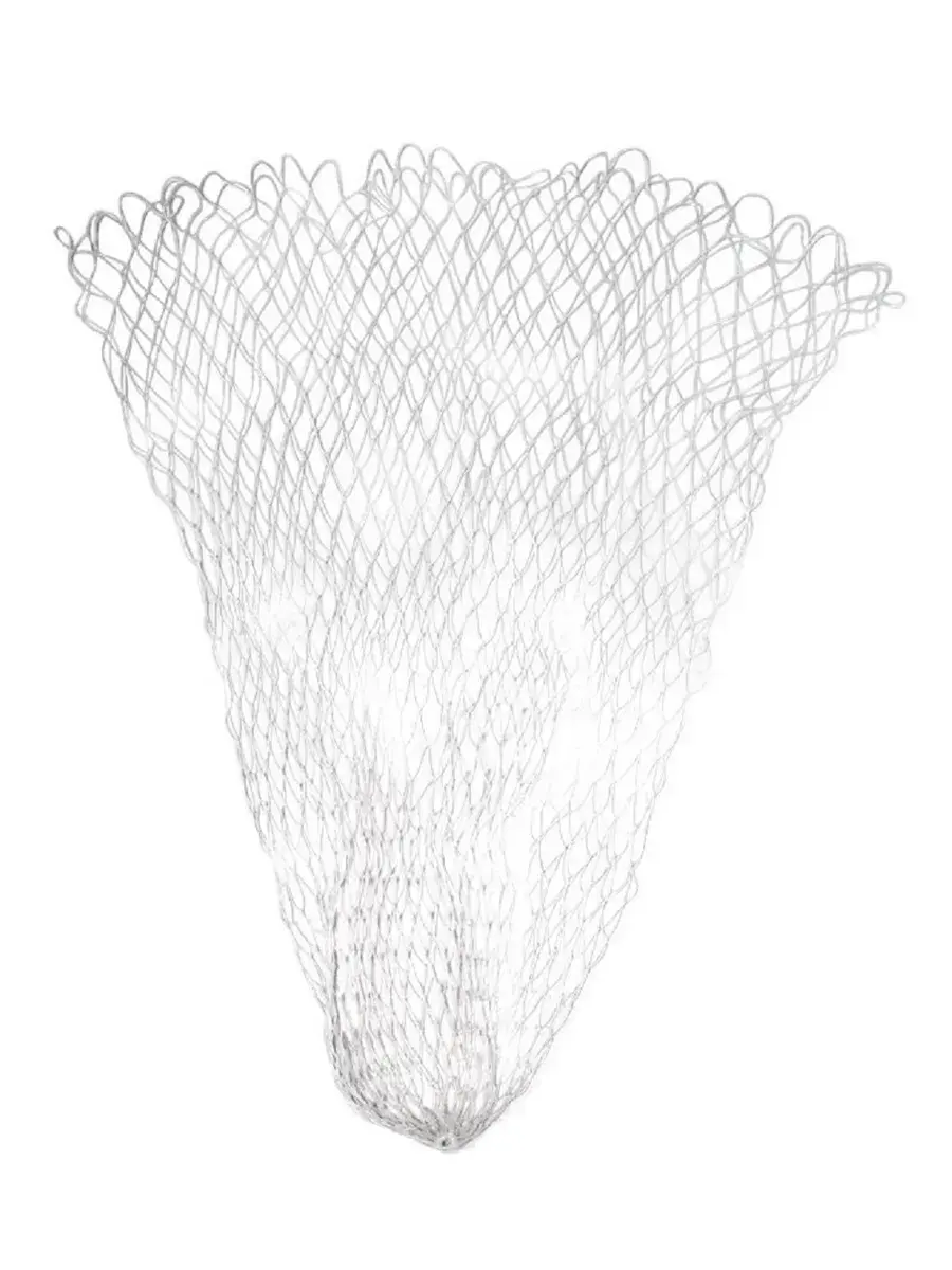 Универсальная сетка для подсачека из лески. Преимущество этого материала в том, что не будут цепляться тройники приманок. Подходит на круглые и овальные обода подсачеков.