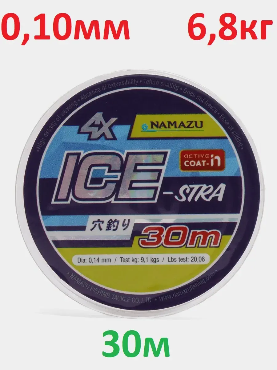 Плетеный шнур Namazu Ice-Stra 4Х разработан для использования в зимних условиях. Он состоит из 4 волокон, изготовленных по технологии FCC-Freeze, за счет которой материал устойчив к низким температурам. Также благодаря ей плетенка наделена максимальной прочностью даже при малом диаметре. Серия Ice-Stra отличается повышенной плотностью плетения. Особое тефлоновое покрытие делает поверхность более ровной и гладкой, а также повышает устойчивость к абразиву. Шнур имеет пониженную гигроскопичность, то есть почти не впитывает влагу, что препятствует обмерзанию. Также стоит отметить отсутствие растяжимости.