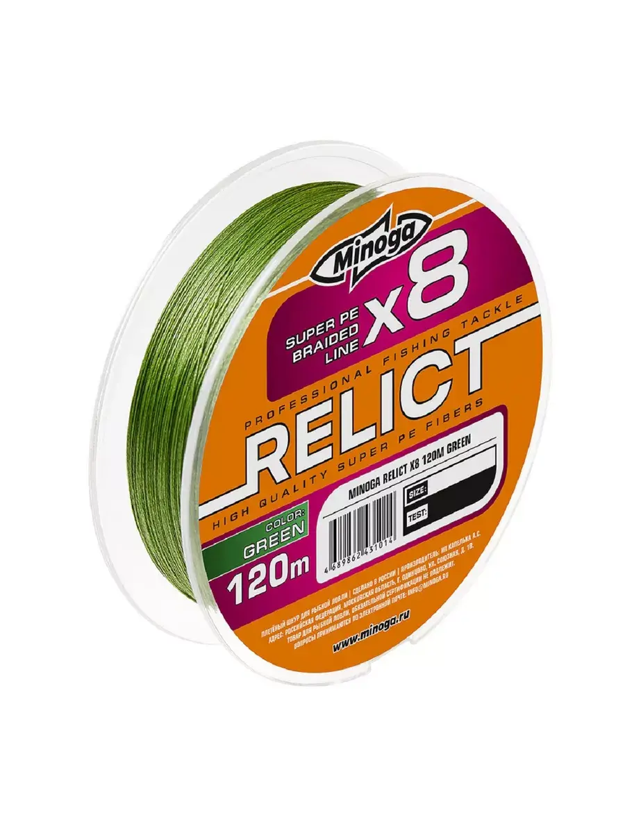8 жильный плетёный шнур Minoga RELICT GREEN в размотке 120м Плетеный шнур Minoga RELICT GREEN Х8 – это серия восьмижильных плетеных шнуров, выполнен из сверхпрочного и гладкого материала, плетение состоит из восьми нитей, размоткой по 120 метров на катушке. Технология многослойного плетения делает этот шнур максимально прочным, сохраняя при этом его мягкость. Повышенная мягкость плетенки позволяет ей идеально сходить с катушки при забросе, а высокая чувствительность позволит вам молниеносно реагировать даже на самую осторожную поклевку.