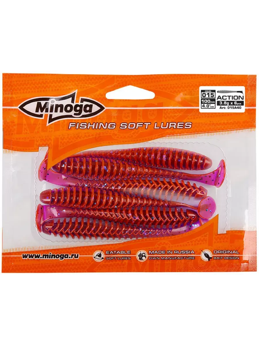 Силиконовая приманка "Minoga" ACTION 4,0"(6шт) 100мм, 3,8 гр, цвет 015
