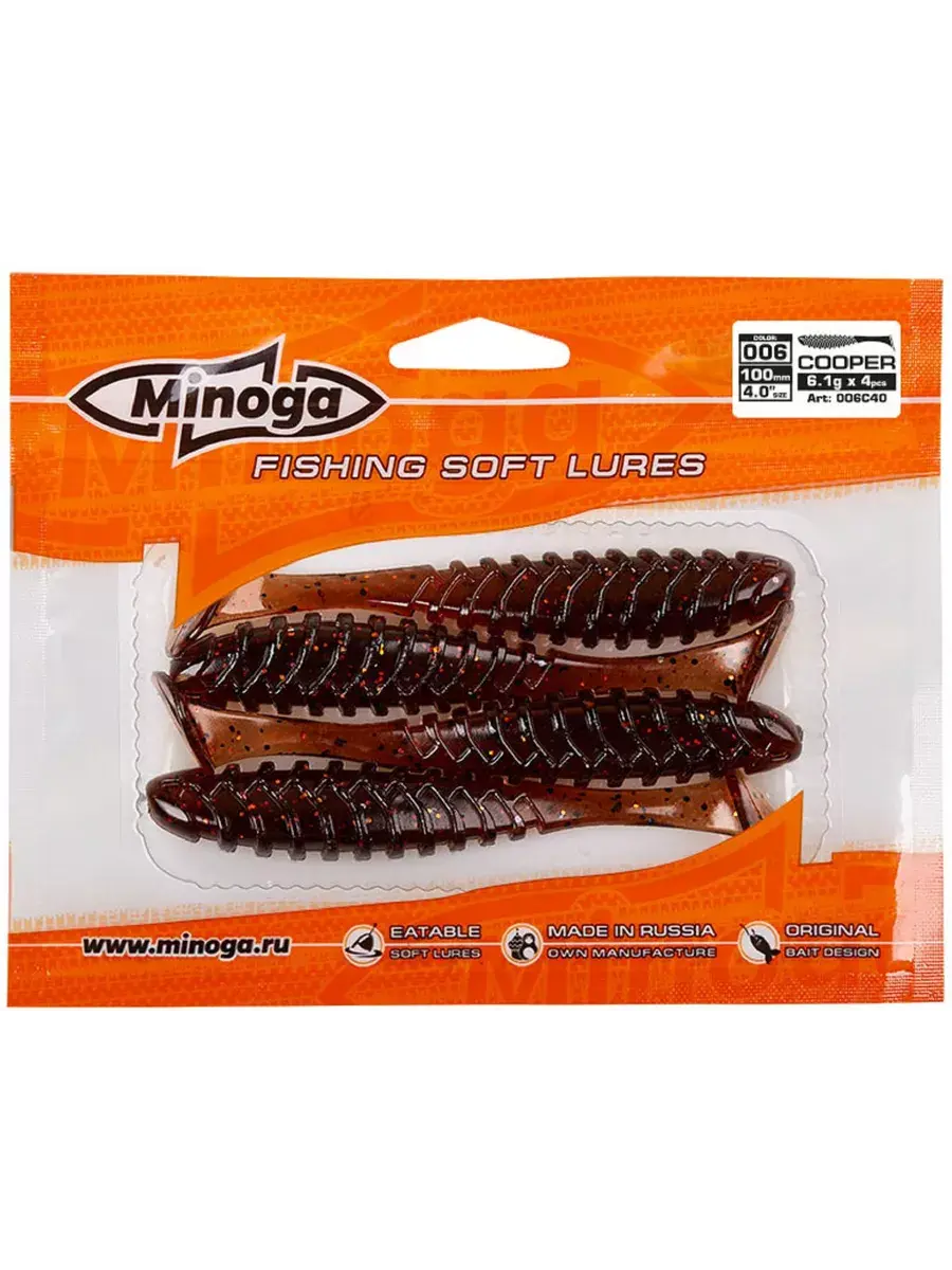 Виброхвост Minoga COOPER имеет удлиненное ребристое треугольное тело, которое создает шумы в водной среде, заставляя тем самым, обратить на себя внимание любому, даже самого пассивному хищнику. Отлично монтируется на офсетный, двойной или одинарный крючок. Приманка работает даже при самой медленной проводке! Cooper делается, как и все приманки MINOGA из мягкого съедобного силикона, с содержанием как вкусовой, так и ароматической добавки. Основным объектом ловли на данную приманку является окунь, судак и щука.