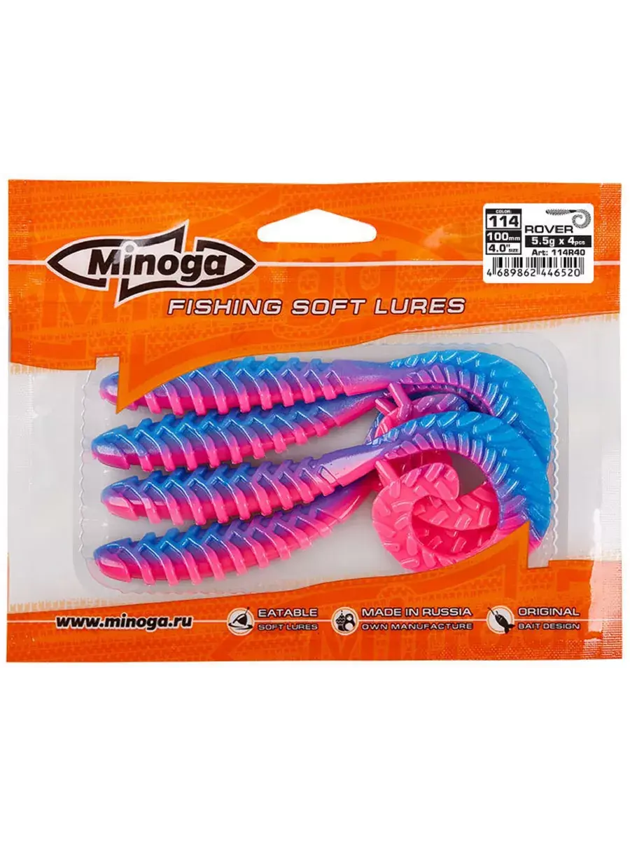 Твистер Minoga ROVER имеет удлиненное ребристое тело, которое создает шумы в водной среде, заставляя тем самым, обратить на себя внимание любому, даже самого пассивному хищнику. Приманка работает даже при самой медленной проводке! Rover делается, как и все приманки MINOGA из мягкого съедобного силикона, с содержанием как вкусовой, так и ароматической добавки. Основным объектом ловли на данную приманку является окунь, судак и щука.