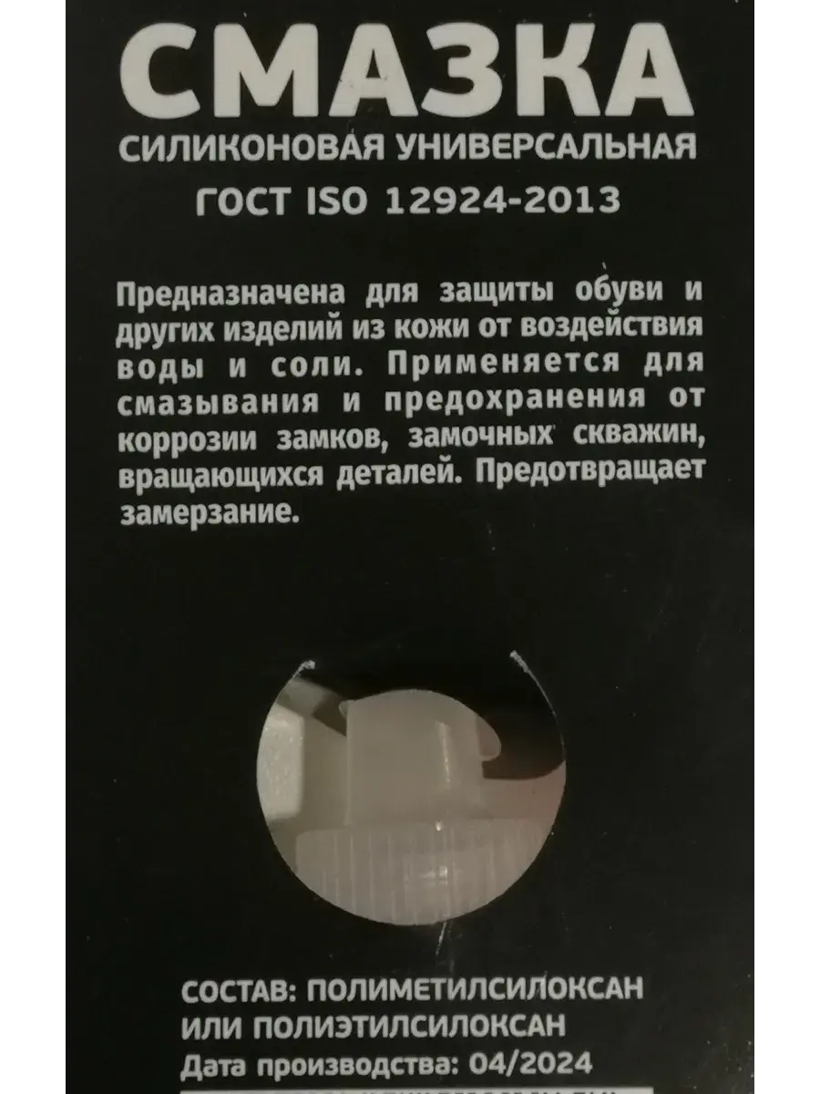 Многофункциональная силиконовая смазка для обработки пластика, резиновых покрышек, уплотнителей стекол, пластиковых окон и так далее. Предназначена для защиты обуви и других изделий из кожи от воздействия воды и соли. Дополнительно применяется для защиты от коррозии замков, замочных скважин, трущихся и вращающихся деталей, а также вытеснения влаги и защиты электрических проводов и контактов. Предотвращает замерзание.