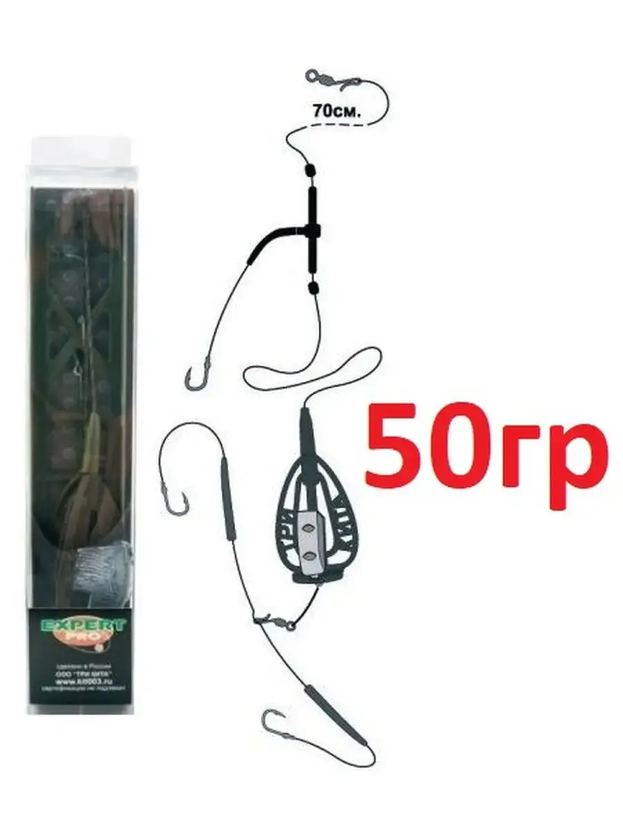 Готовая карповая оснастка Три Кита Убийца карпа 50гр с отводом это достаточно эффективная снасть, которая применяется рыболовами при ловле карпа в придонном слое воды. Подходит для ловли карпа на слабом течении в озерах и водоемах для дальних забросов. Разработана с учетом особенностей питания рыбы, для максимальной уловистости снасти. Профессиональный карповый монтаж "Три Кита" Убийца Карпа с коромыслом комплектуется поводковым материалом и крючками ведущих мировых производителей рыболовных снастей: "Owner", "Gamakatsu", "Climax". При разработке этих карповых снастей были учтены пожелания многих рыболовов, как спортсменов, так и любителей, чем была достигнута максимальная уловистость данных снастей.Снасть забрасывается либо с помощью фидерного удилища оснащенным катушкой, либо как обычная донка. Перед забросом кормушка набивается прикормкой, которая в зависимости от силы течения подбирается так, чтобы вымывание ее из кормушки происходило в течении 20-30 минут, при сильном течении возможно добавление глины.