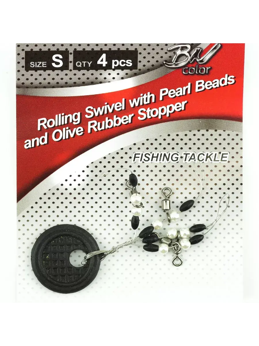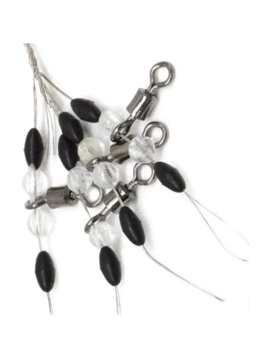 Стопор с вертлюгом - элемент рыболовной оснастки, который предназначен для ограничения движения по леске поплавка, грузила, поводка, вертлюжка, крючка. Он позволяет придать снасти определенные качества, обеспечив ее основным компонентам необходимую амплитуду скольжения по нити либо полностью зафиксировав их в нужной точке. Рыболовный вертлюг (вертлюжок) - это один из элементов оснастки, состоящий из колец, соединённых вращающимся шарниром. Вертлюг необходим для того, чтобы препятствовать закручиванию рыболовной лески(плетенки или монофильной), сохранять целостность лески , для быстроты и удобства смены приманки. Главное – это лёгкость вращения петель вертлюжка. Идеальная работа вертлюга решает исход вываживания хищной рыбы (щука, окунь, судак…). Оснастка подходит для многих видов летней рыбалки (спиннинговой, фидерной, донной, поплавочной...).
