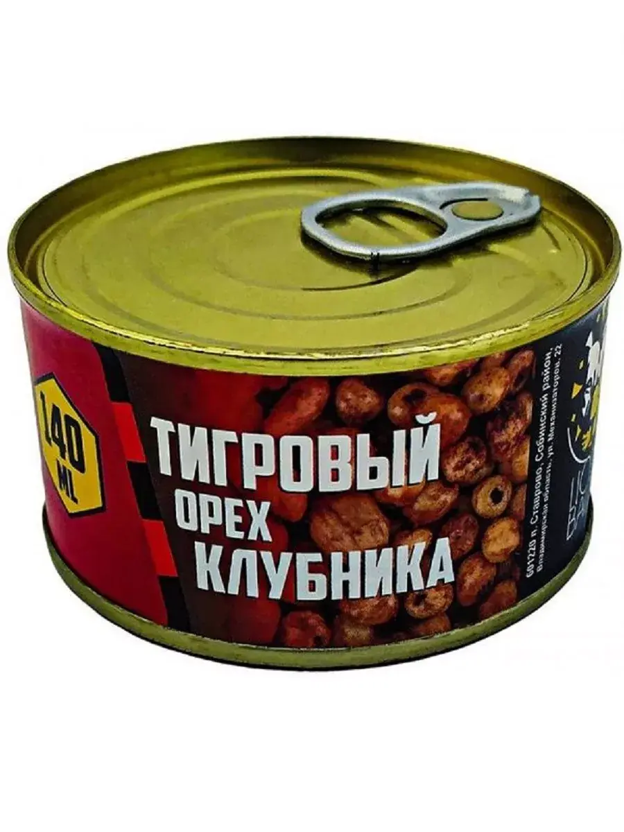 Тигровый орех – одна из самых популярных насадок и прикормок для ловли карпа. По своему составу орех является очень питательным и содержит большое количество полезных жиров, а также до 28% сахара, благодаря чему он имеет слегка сладковатый натуральный вкус. Это очень привлекает карпов и, порой, становится неоспоримым преимуществом даже в самых тяжелых условиях ловли. Небольшая по объему фасовка банки (140мл) может использоваться рыбаками, в качестве готовой насадки на волосяной монтаж. Для этого достаточно просверлить в одном или двух орешках тонким сверлом отверстия, либо проткнуть их сразу тонкой монтажной иглой, после чего Ваш монтаж готов. Насадку из тигрового ореха рекомендуется использовать на водоемах, где очень много мелкой рыбы, которая быстро разбивает даже самые твердые бойлы. Как раз в такой ситуации Вам на помощь придут именно тигровые орешки, а небольшая баночка не займет много места в вашем снаряжении, но зато эффективная и универсальная насадка будет всегда с Вами рядом. Жестяная банка 140мл с удобным кольцом для вскрытия. Срок годности: 3 года.