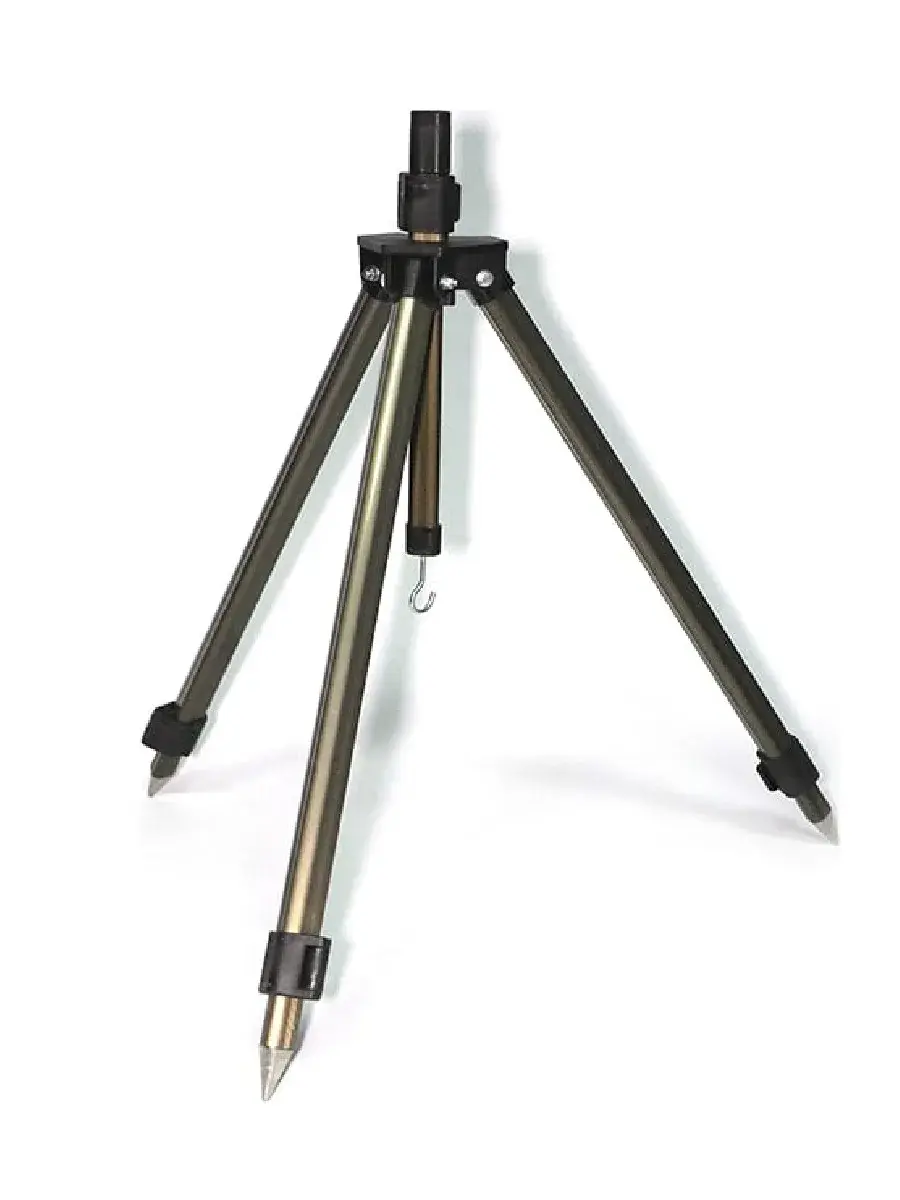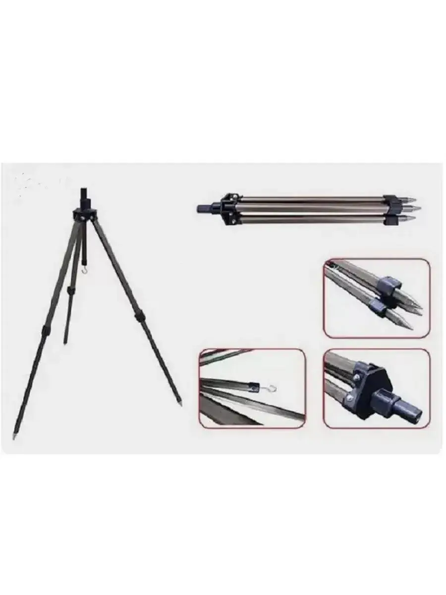 Телескопическая тренога с резьбовым соединением под рогатины, перекладины и гребёнки. Позволяет установить удилище на любом грунте, в том числе на плитах и дамбах. Нижний крюк предназначен для подвешивания груза в ветреную погоду.