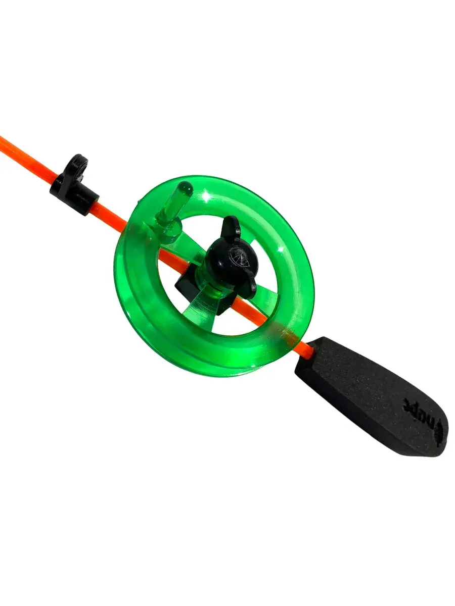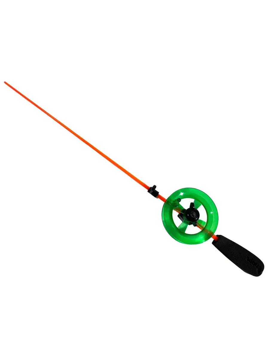 Сверхлёгкая, но прочная удочка, отлично подходит для спортивной рыбалки. Ручка выполнена из ЭВА (этиленвинилацетат) - вспененный каучук. Благодаря этому, ручка мягкая и тёплая. Данные удочки имеют сверхмалый вес (14 грамм) и высокую прочность. Катушка изготовлена из поликарбоната (внешний диаметр 55мм), хлыстик выполнен из стекловолокна (общая длина от ручки 325мм), остальные детали из морозостойкого АБС-пластика. Винт, удерживающий катушку, служит фрикционом и позволяет настроить плавное притормаживание или полностью остановить вращение. Кольцо для лески располагается на небольшом расстоянии от катушки, это добавляет удобства в оснащении удочки и уменьшает угол изгиба лески. Кольцо имеет металлический люверс, защищающий его от перетирания, а также дополнительное колечко для фиксации приманки в транспортном положении. Благодаря малому весу и стеклопластиковому шестику, имеют высочайшую чувствительность и информативность. Сверхлёгкая, но прочная удочка, отлично подходит для спортивной рыбалки. Благодаря стеклопластиковому хлыстику имеет отличную информативность и точность игры. Фрикцион позволяет плавно регулировать усилие прокручивания - от лёгкого до полного стопора. Особопрочная катушка из поликарбоната.