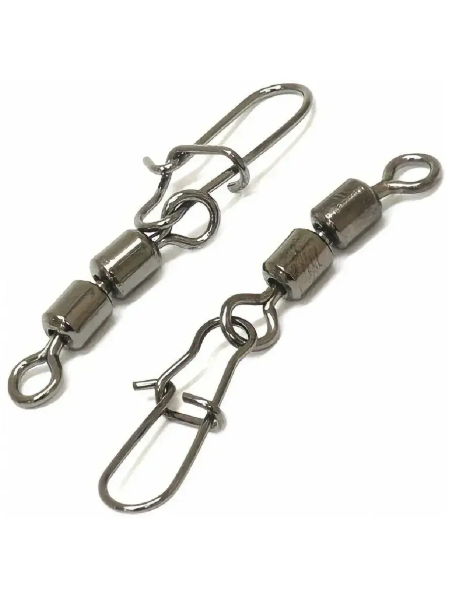 Вертлюжок Namazu с двумя бочкообразными корпусами и застежкой. Классический по форме карабин надежно соединяет нужные детали оснастки, не нарушая их подвижности. Ушки вертлюга имеют круглую форму.