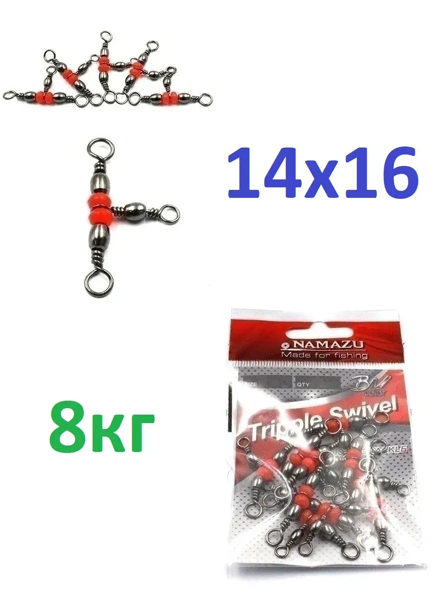 Модель тройного вертлюга Namazu Tripple Swivel пригодится для того, чтобы соединить основную леску и вспомогательные поводки, предотвратив при этом их перекручивание. Такая модель найдет применение в любых способах ловли. У вертлюгов этой модели классическое цилиндрическое тело. Узлы, соединяющие части вертлюга, защищены бусинами красного цвета. Triple Swivel продается в упаковках по 10 штук. Для большей долговечности вертлюг защищен антикоррозийным покрытием.