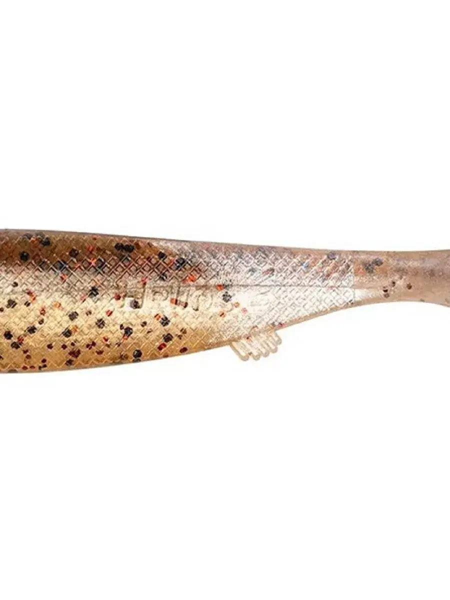 Максимально реалистичная приманка, созданная специально для ловли хищников, привыкших к стандартным приманкам. Рельефная чешуя, глаза, плавнички с точностью копируют настоящих рыбок. В сочетании с великолепной игрой, которой обладает этот виброхвост, получается просто "убойная" приманка.