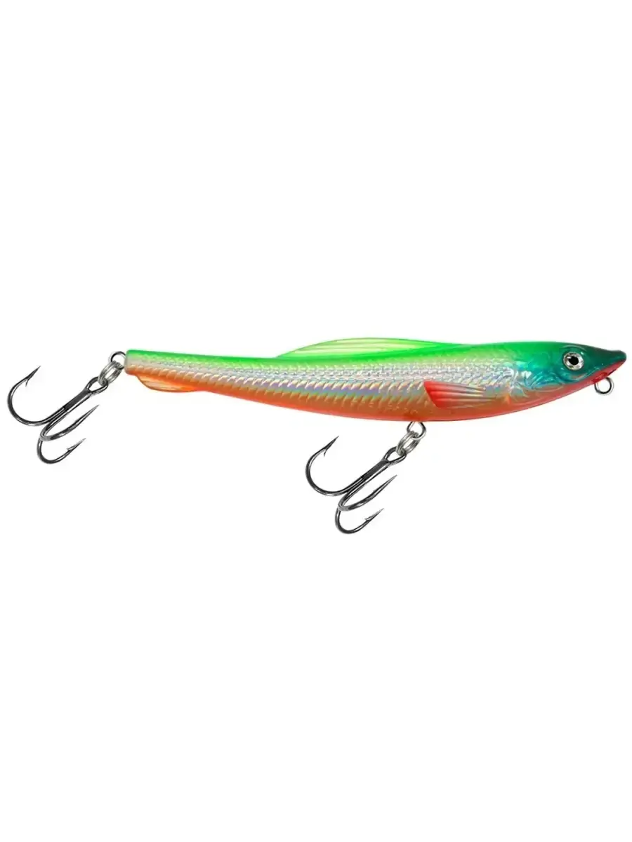 Воблер AQUA CRAZY DOG Floating - это безлопастной плавающий поверхностный пластиковый Walker, с имитацией зигзагообразно кормящейся рыбки или раненого малька в верхних слоях воды. Для увеличения дальности заброса и стабилизации игры при разнонаправленной рывковой проводке воблер огружен металлическими шариками, которые, находясь в средне- и высокочастотных резонансных камерах, создают дополнительный волновой акустический эффект. Воблер AQUA CRAZY DOG производится из ударопрочного пластика, имеет голографическое светоотражающее 3D-покрытие, 3D глаза и покраску стойкими флуоресцентными красками, покрытых дополнительным защитным слоем лака для защиты приманки от повреждений при ловле зубами таких видов рыбы, как щука или судак. Все волкеры AQUA оснащены высококачественными тройниками Ultra-C японского производства.