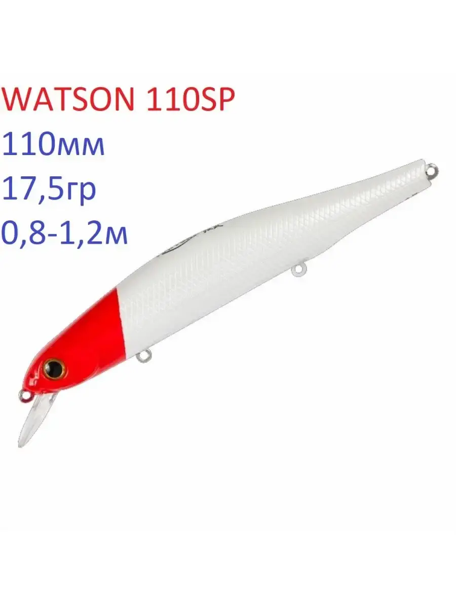 WATSON 110SP имеет две, разделенные боковой линией, рельефные фактуры поверхности. Верхняя часть выполнена в виде ромбовидных насечек , нижняя- в виде косых насечек. Головная часть воблера рельефно имитирует жаберные крышки рыбки, а 3D глаза дополняют реалистичность дизайна всей приманки. WATSON 110SP оснащен магнитной системой дальнего заброса и системой балансировки. Вооружение приманки - три тройника Owner Cultiva соответствующего размера. Качественное ЛКП, соответствующее современным стандартам.